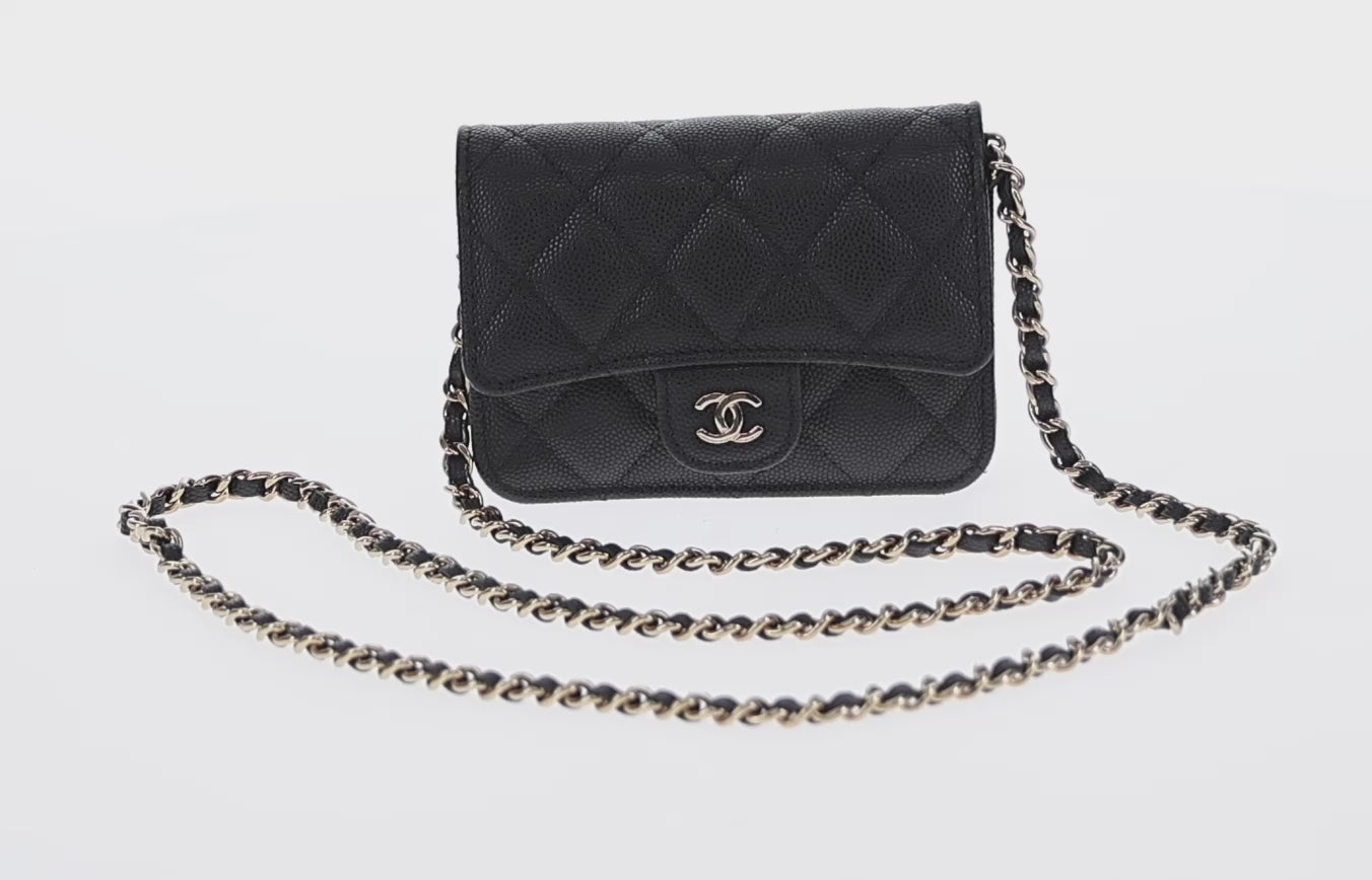 Christian Dior Chain Shoulder Bag Leather Black Gold Auth bs30789