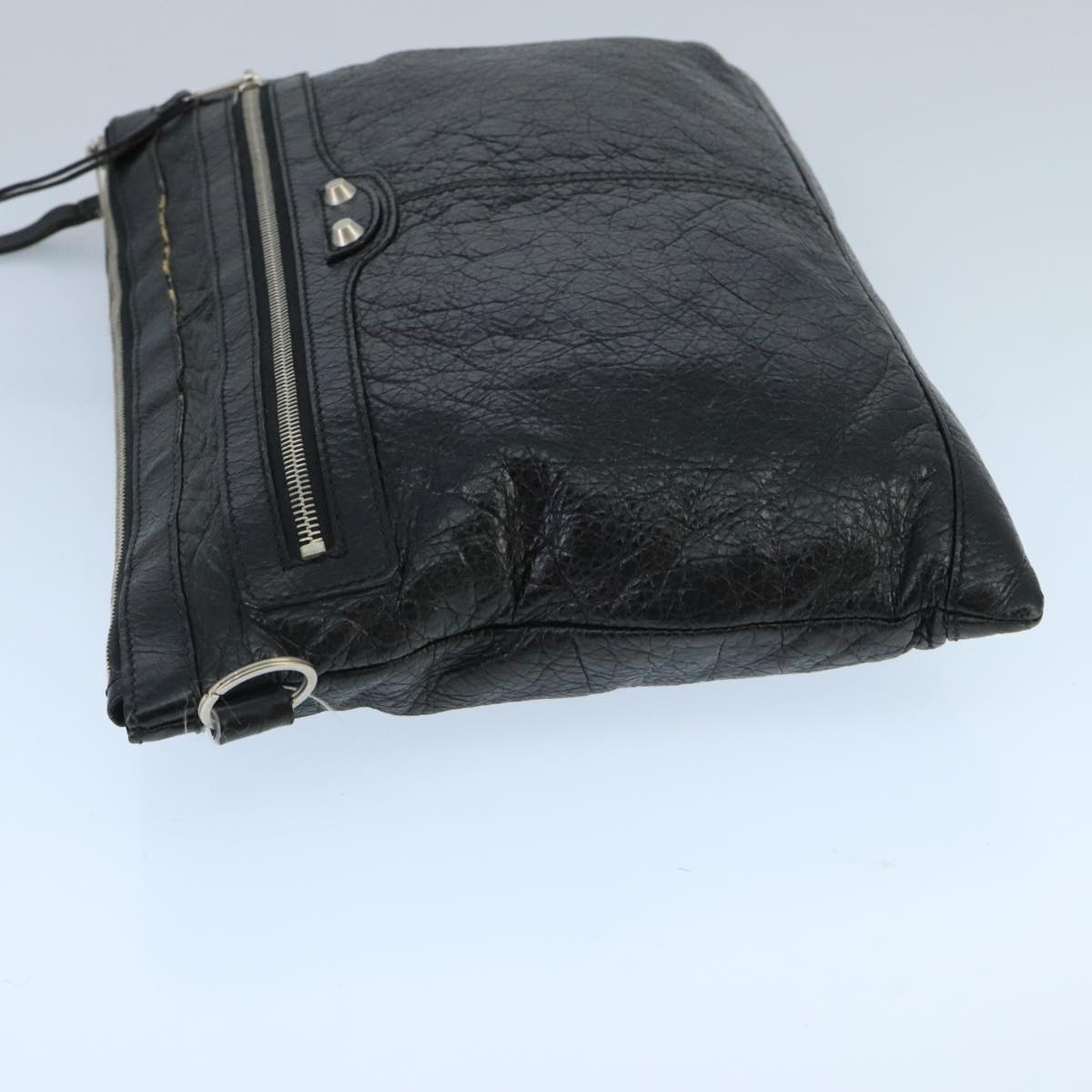 BALENCIAGA Clutch Bag Leather Black Silver 273023 Auth bs19499