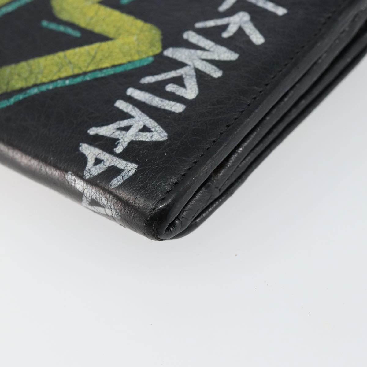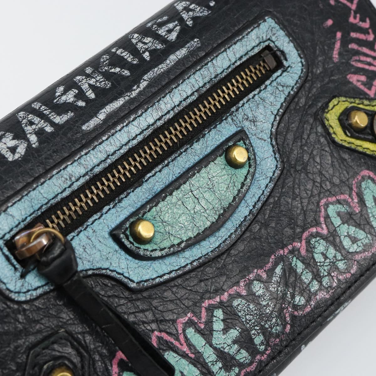BALENCIAGA Continental Graffiti Wallet Leather Black Gold 164471 Auth bs29956
