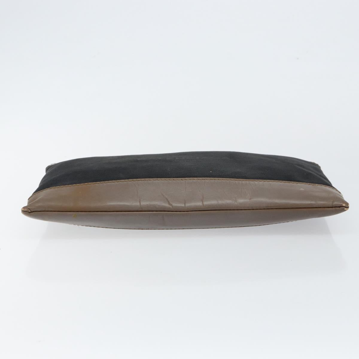BALENCIAGA Navy Clip M Pouch Canvas Leather Black Silver Auth BA6615