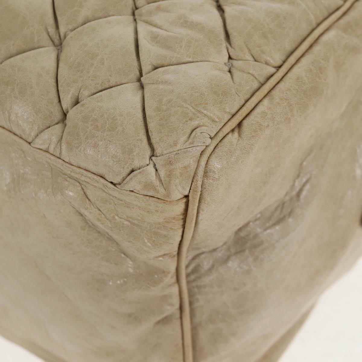 BALENCIAGA The Matelasse Hand Bag Leather Beige Silver 168031 Auth 142293V