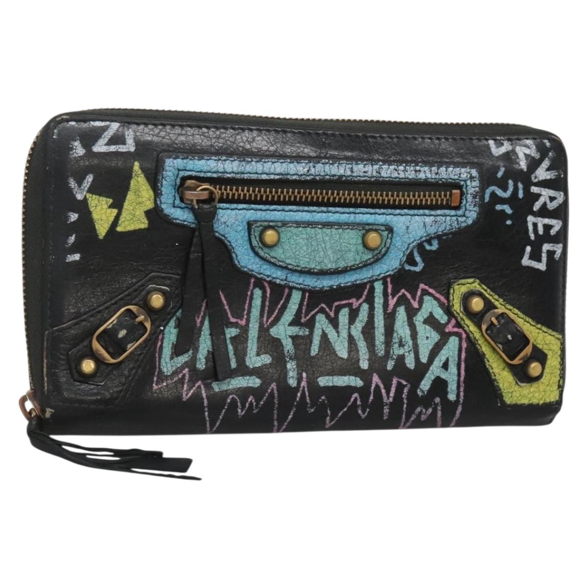 BALENCIAGA Wallet Leather Black Gold 253036 Auth bs29147