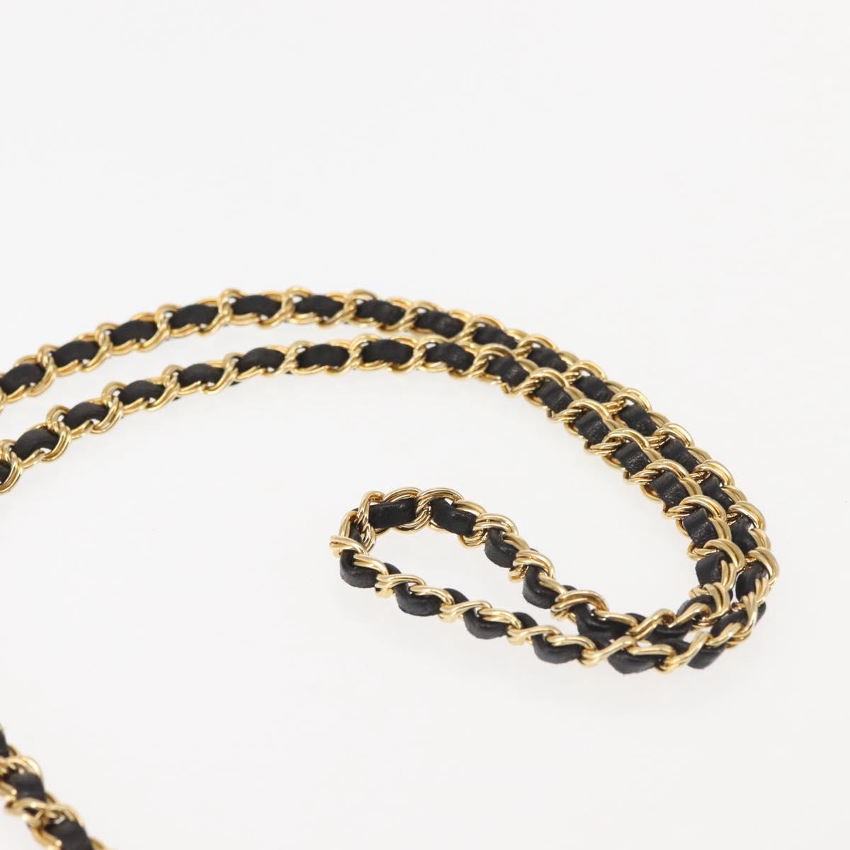 BALLY Chain Shoulder Bag Leather Black Gold Auth 142556