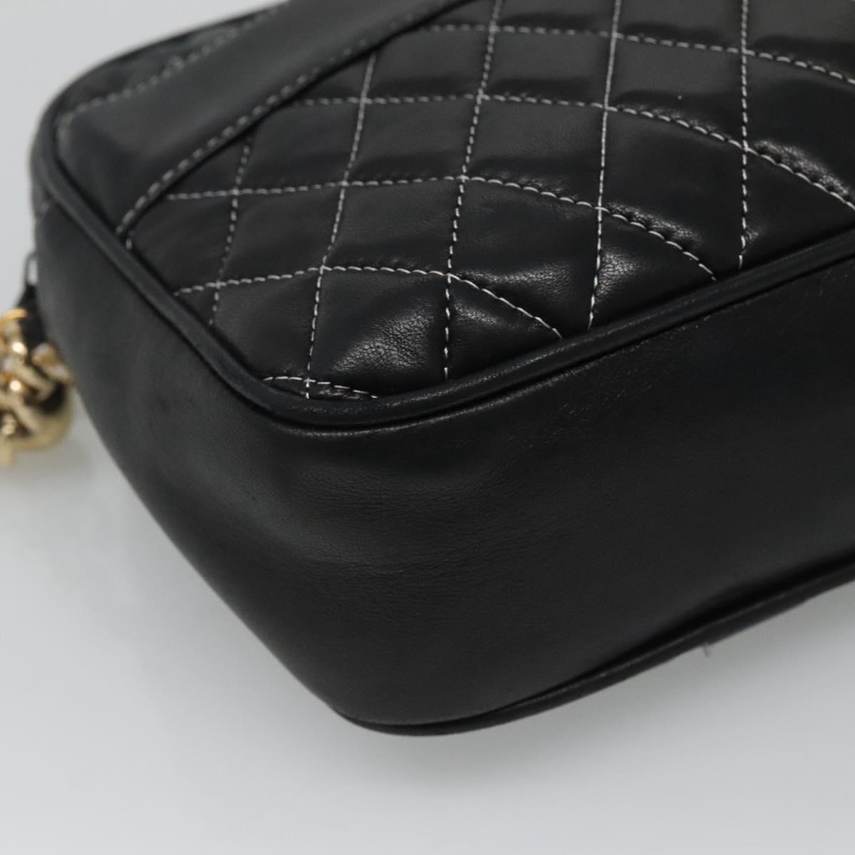 BALLY Chain Shoulder Bag Leather Black Gold Auth bs23848