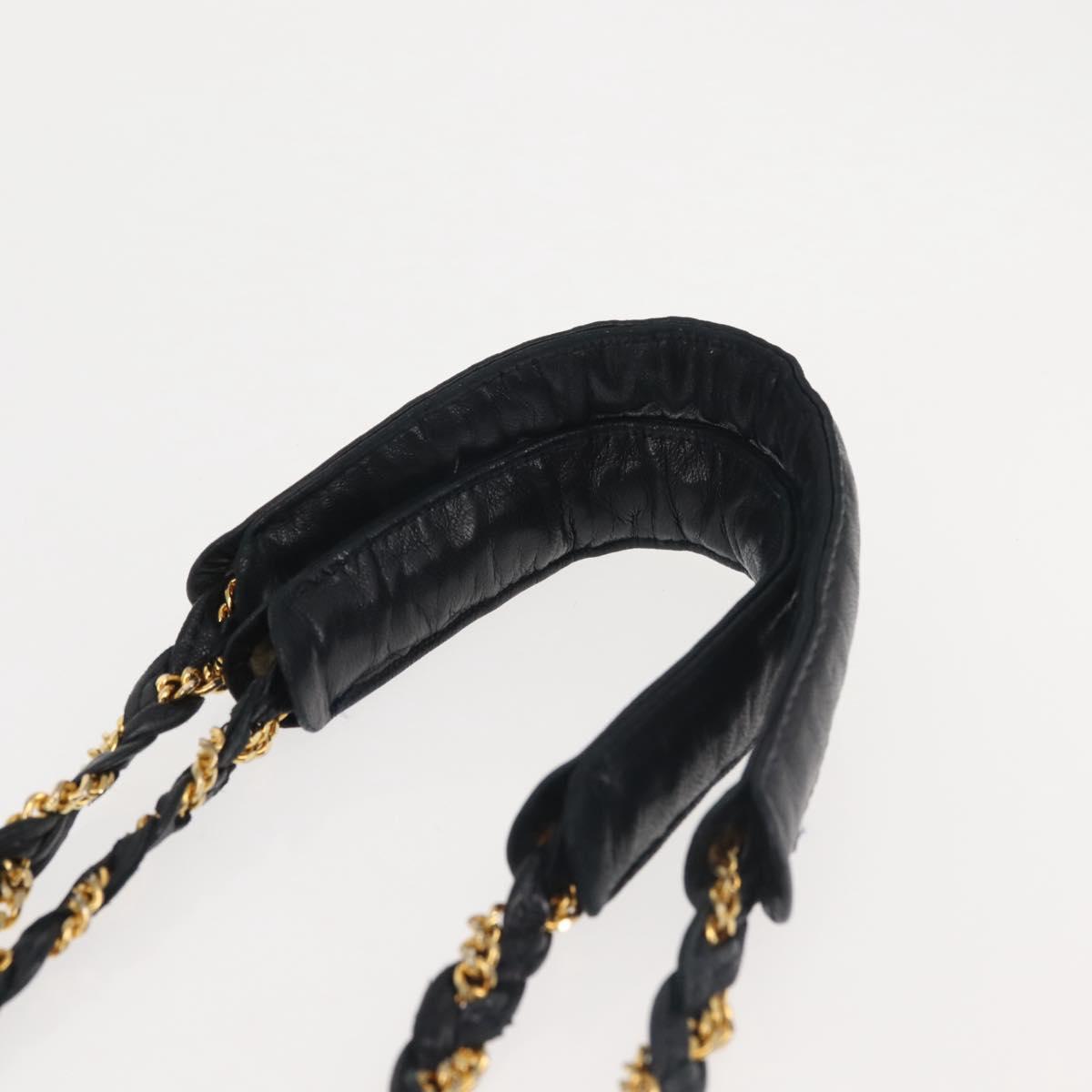 BALLY Chain Shoulder Bag Leather Navy Gold Auth BA6225