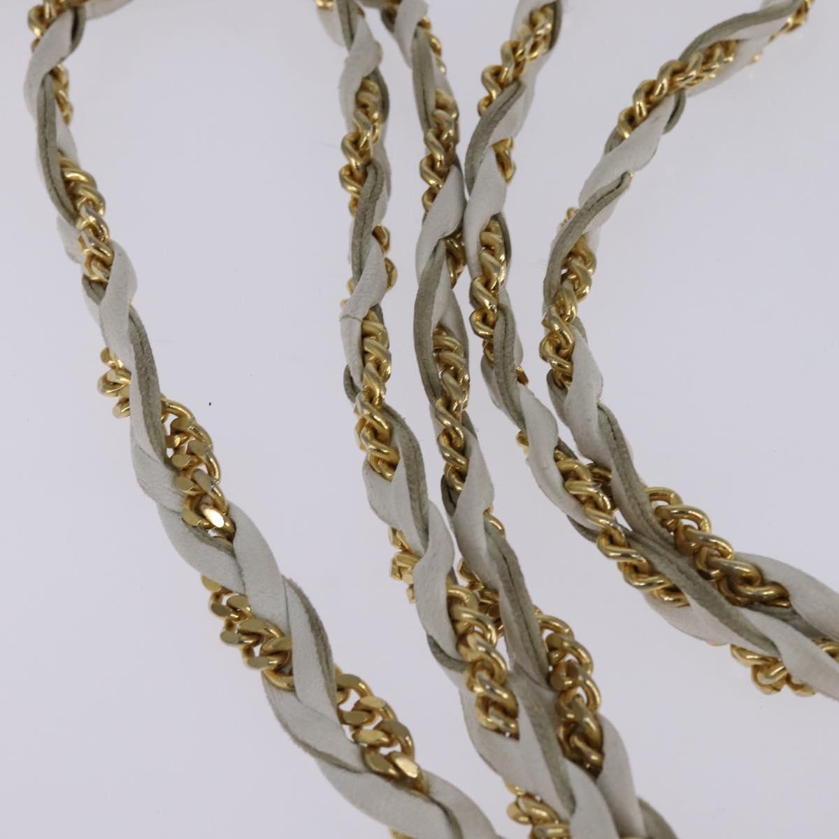 BALLY Chain Shoulder Bag Leather White Gold Auth am9085