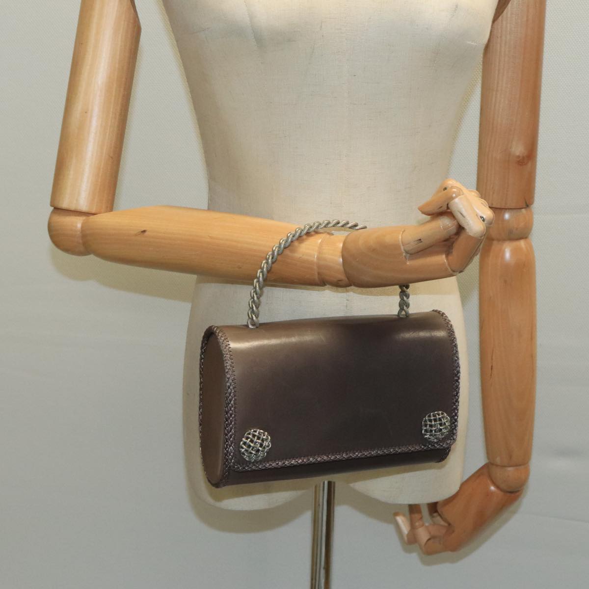 BALLY Hand Bag Leather Gray Auth bs19504