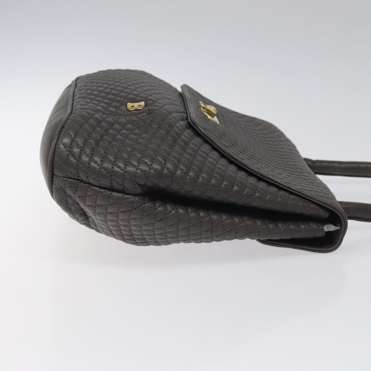 BALLY Hand Bag Leather Gray Gold Auth 116073
