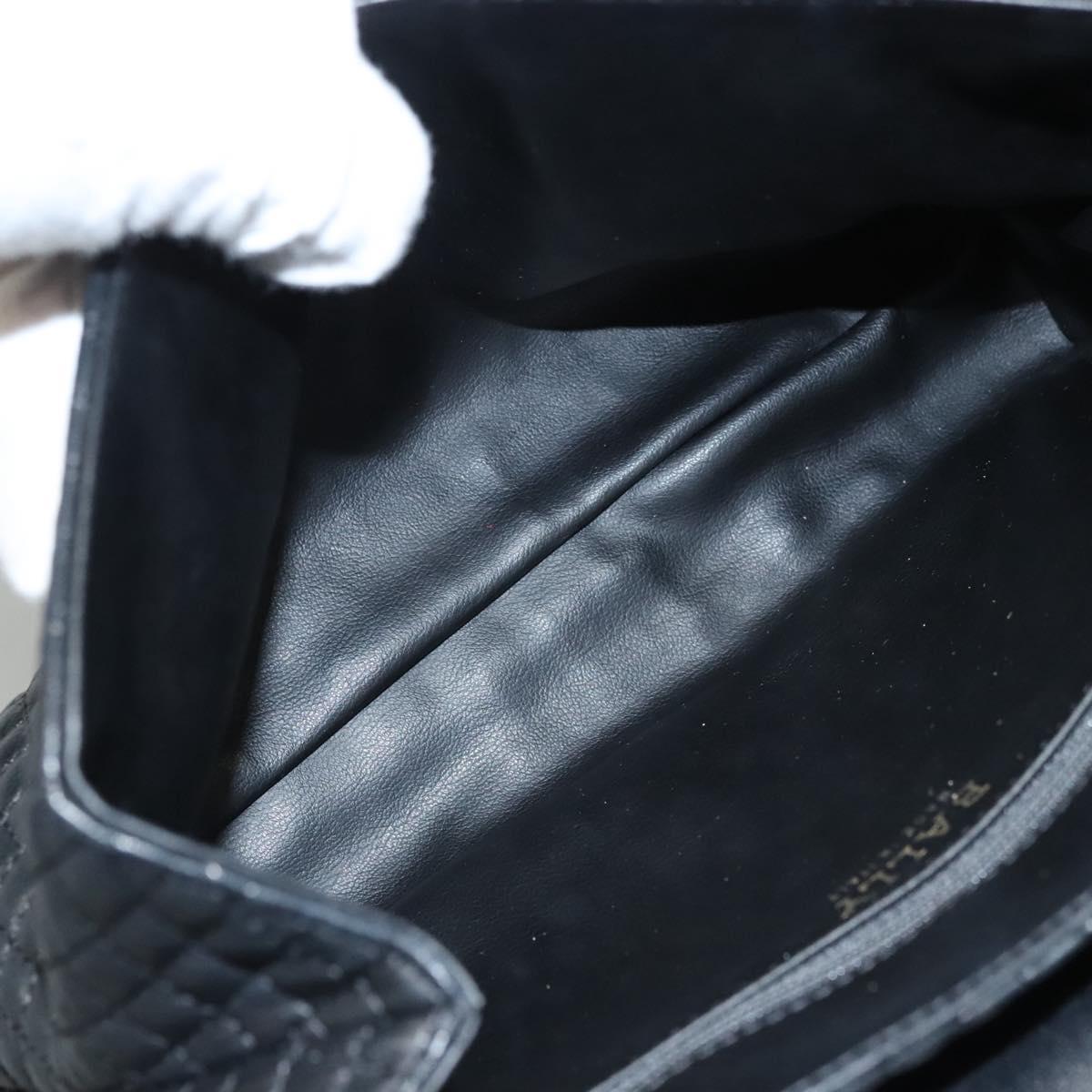 BALLY Quilted Chain Shoulder Bag Leather Black Gold Auth BA1239