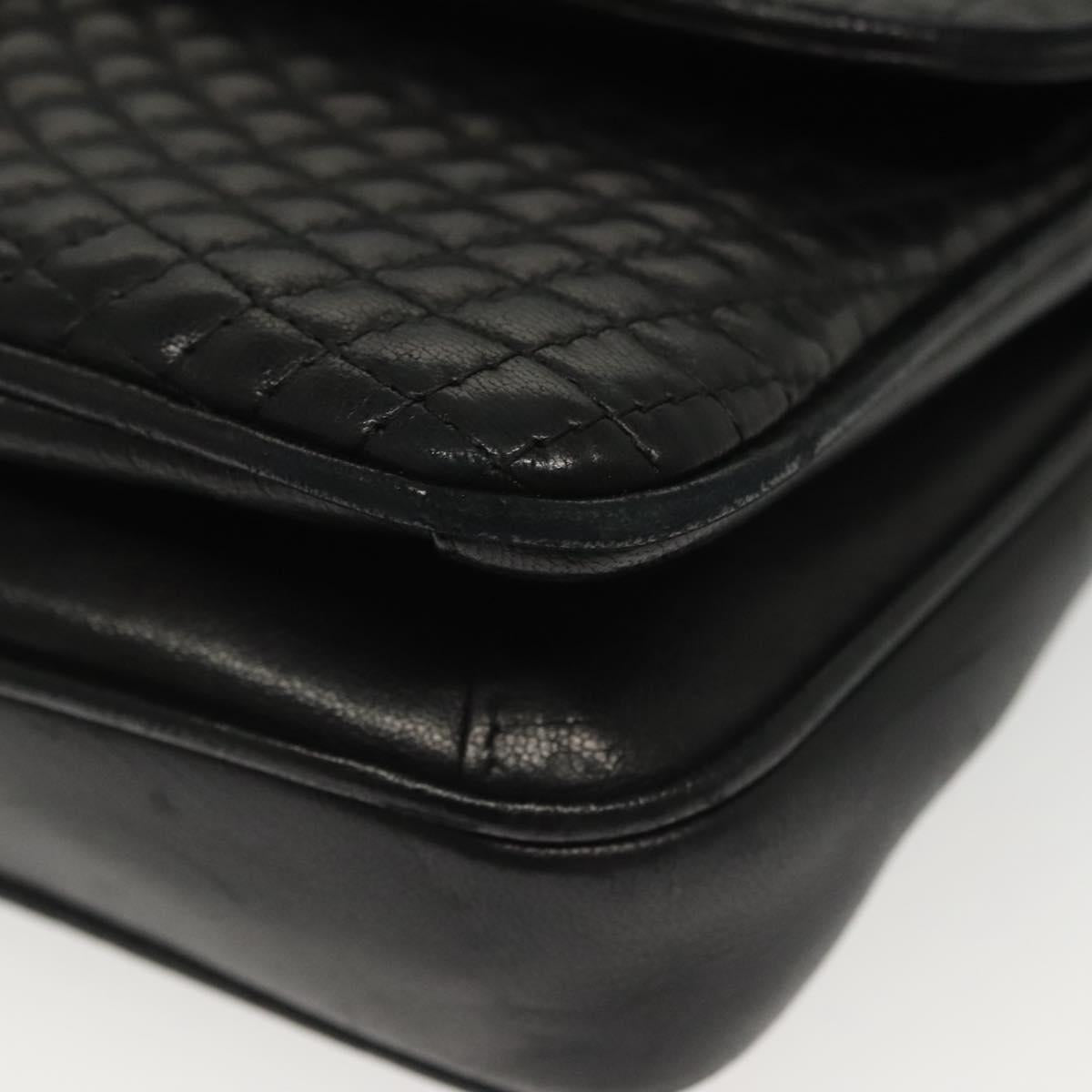 BALLY Quilted Chain Shoulder Bag Leather Black Gold Auth BA5432