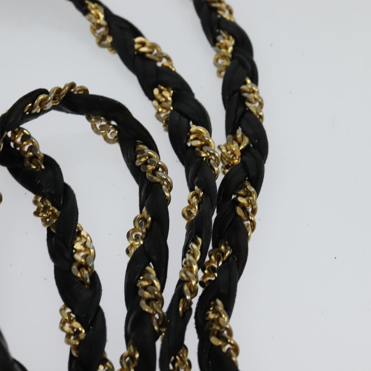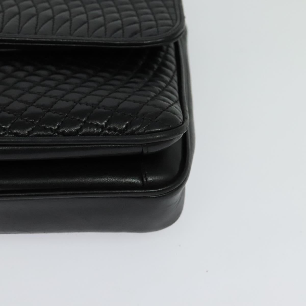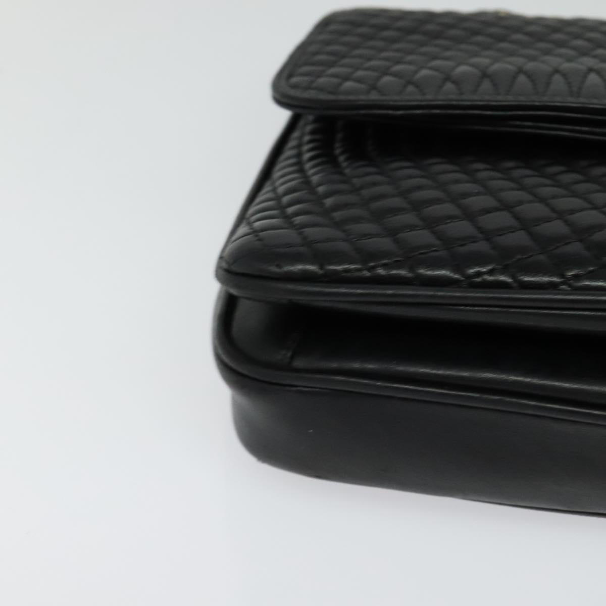 BALLY Quilted Chain Shoulder Bag Leather Black Gold Auth kk478
