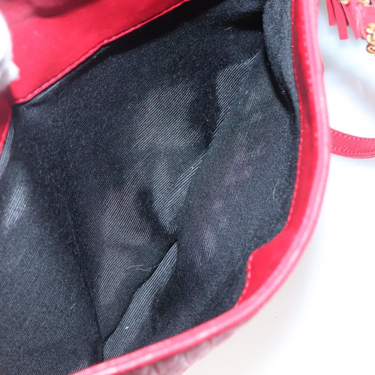 BALLY Quilted Chain Shoulder Bag Leather Red Gold Auth 133396