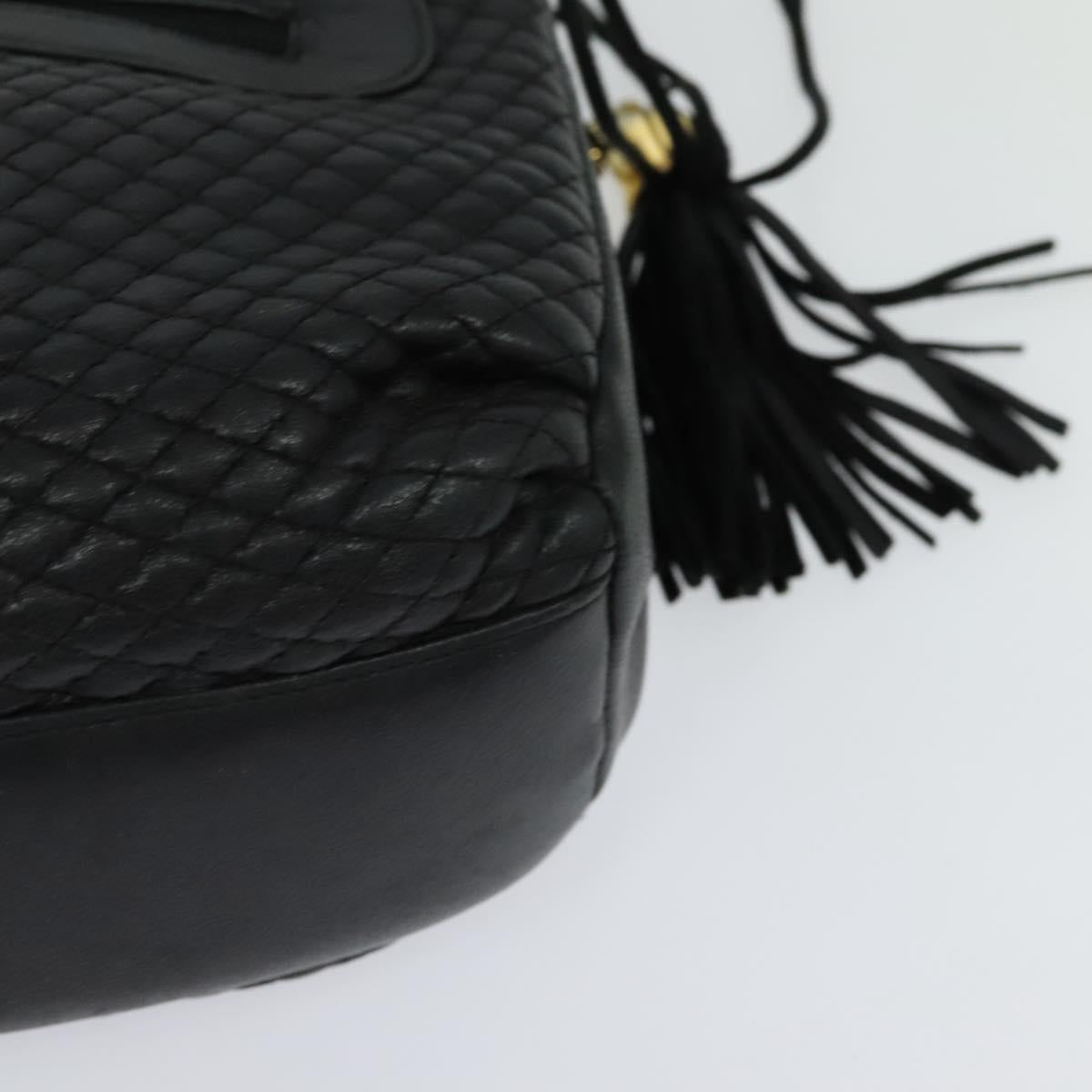 BALLY Quilted Hand Bag Leather Black Auth BA969