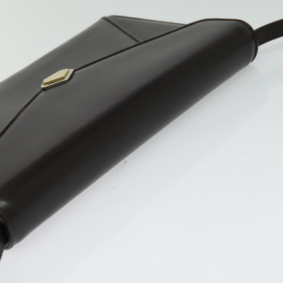 BALLY Shoulder Bag Leather Dark Brown Gold Auth BA1161