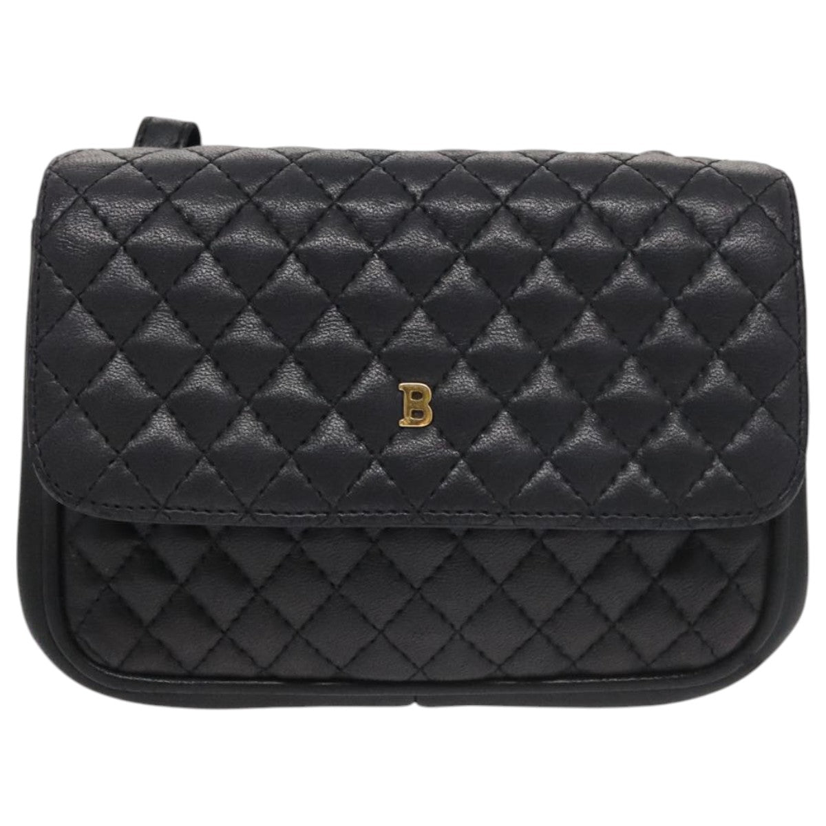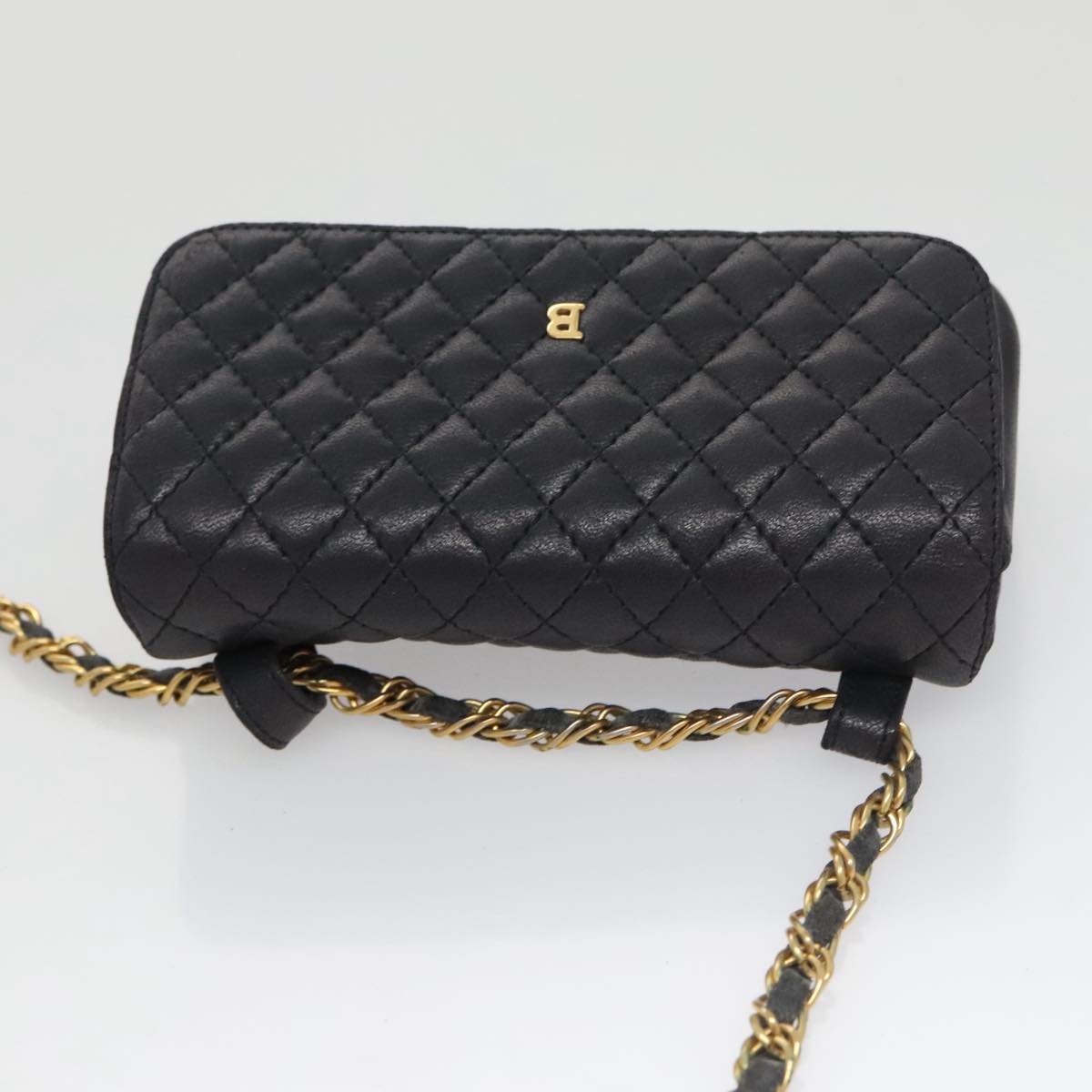 BALLY Shoulder Bag Leather Navy Gold Auth bs20712