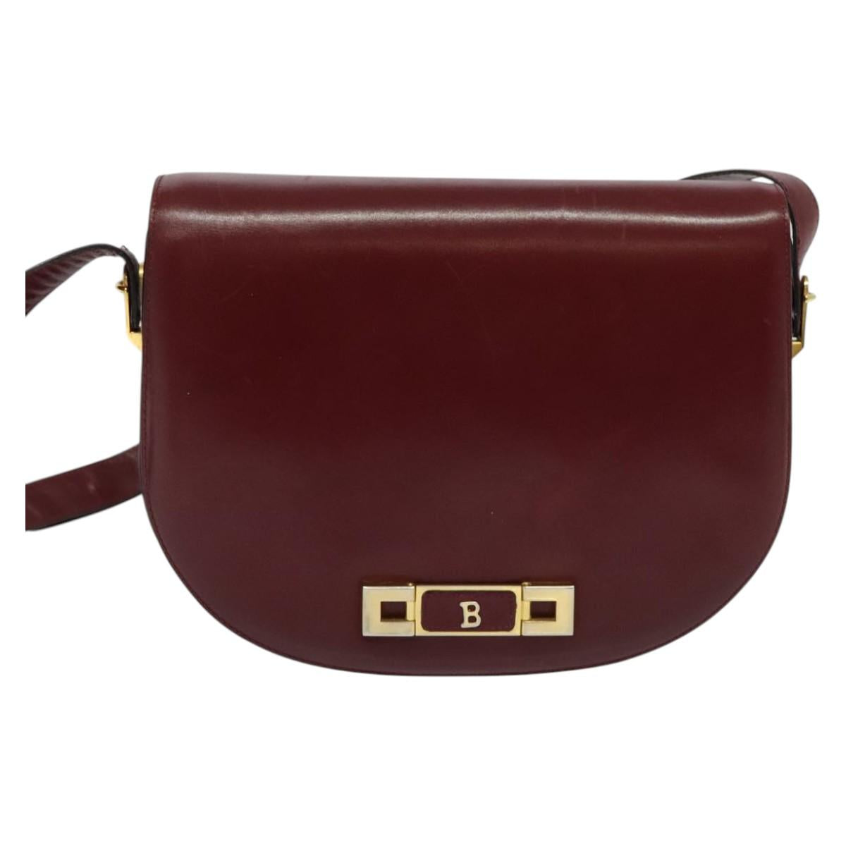 BALLY Shoulder Bag Leather Red Gold Auth bs28765