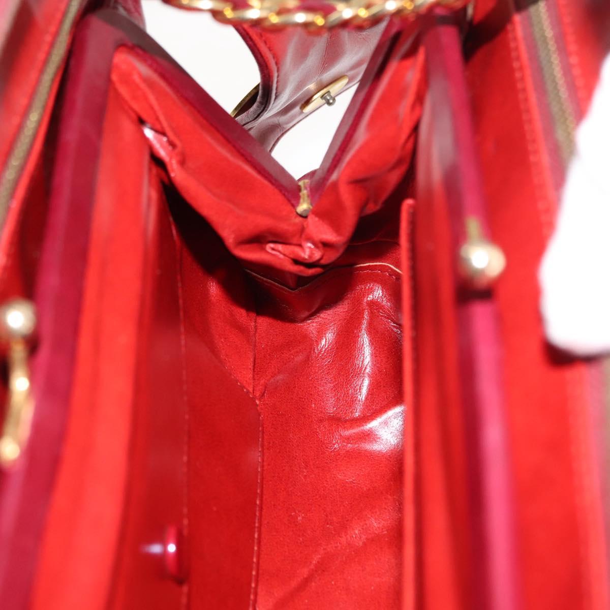BALLY V Stitch Chain Hand Bag Lamb Skin Bordeaux Gold Auth bs29487