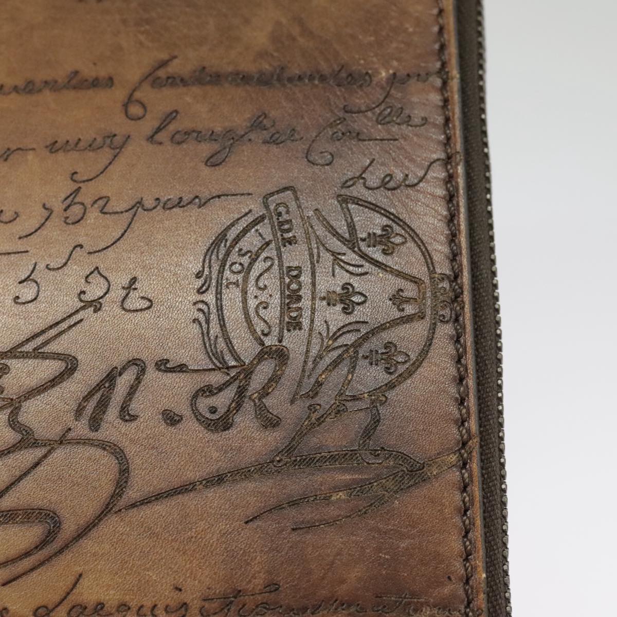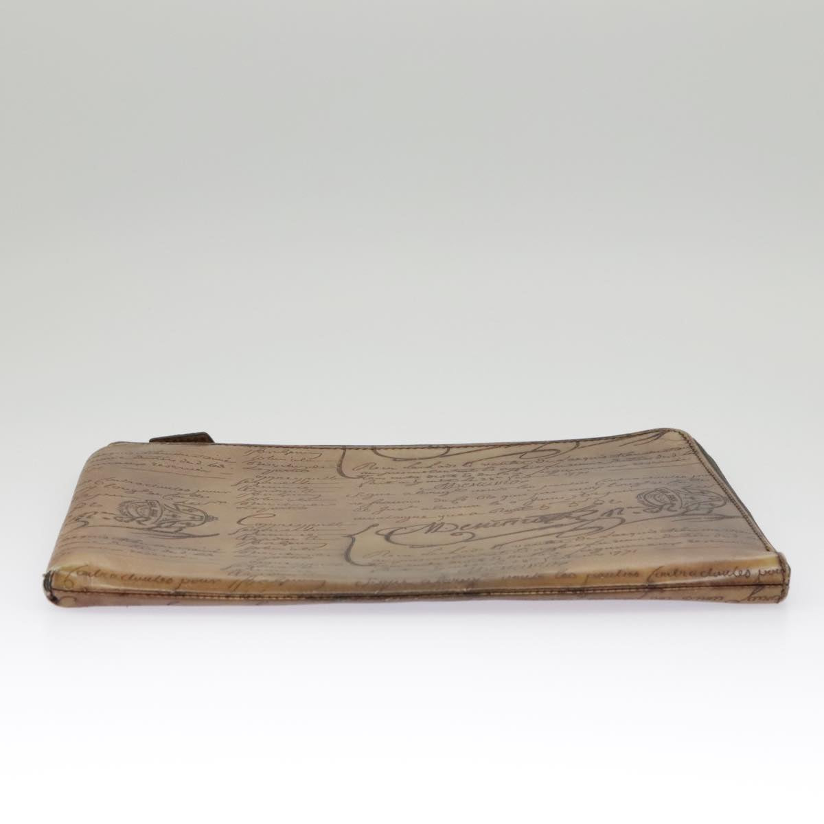 Berluti Calligraphy Clutch Bag Leather Brown Auth bs19901