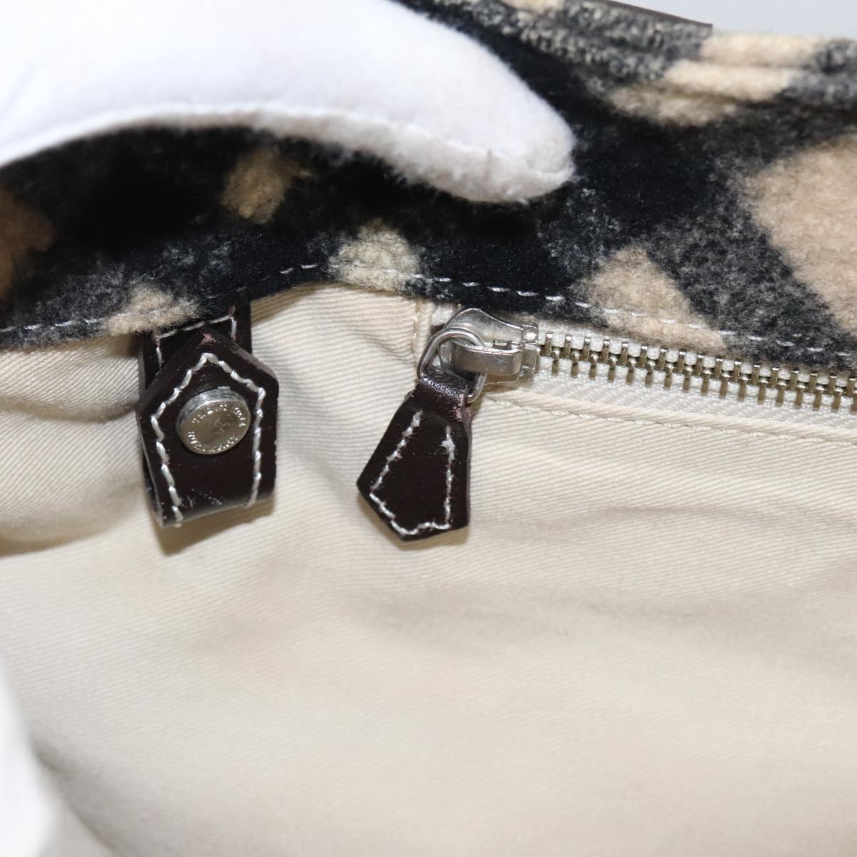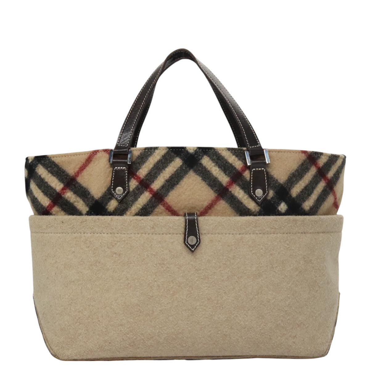 BURBERRY Blue Label Nova Check Hand Bag Wool Beige Auth 103260