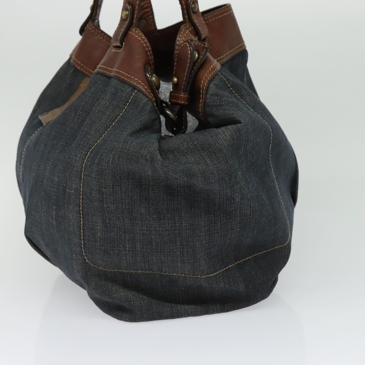 BURBERRY Blue Label Tote Bag Denim Blue Gold Auth bs27143
