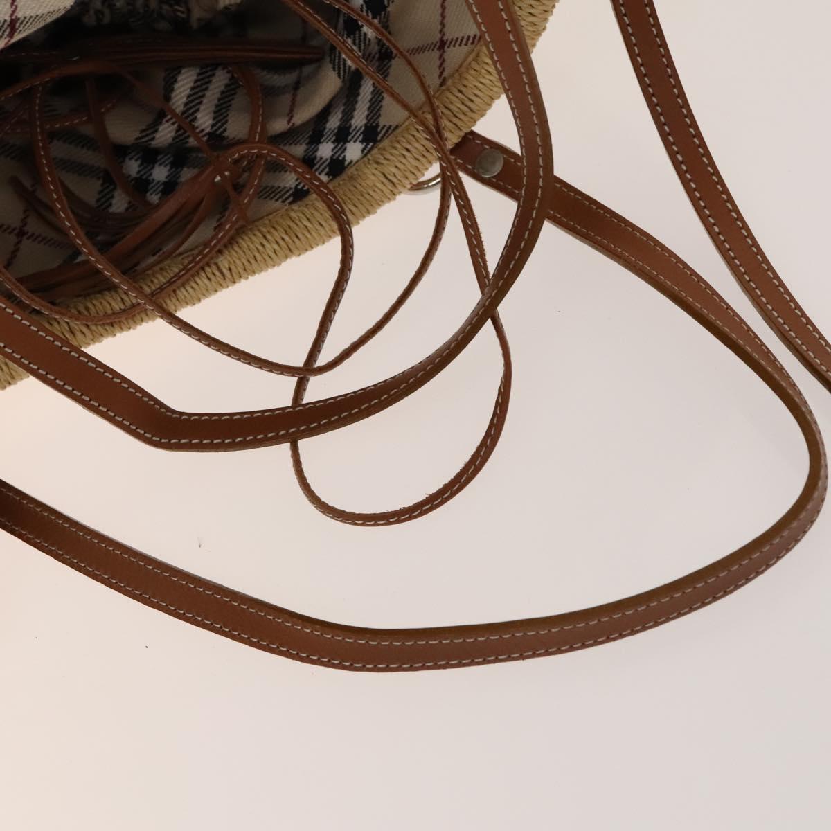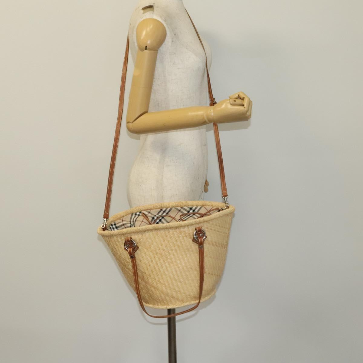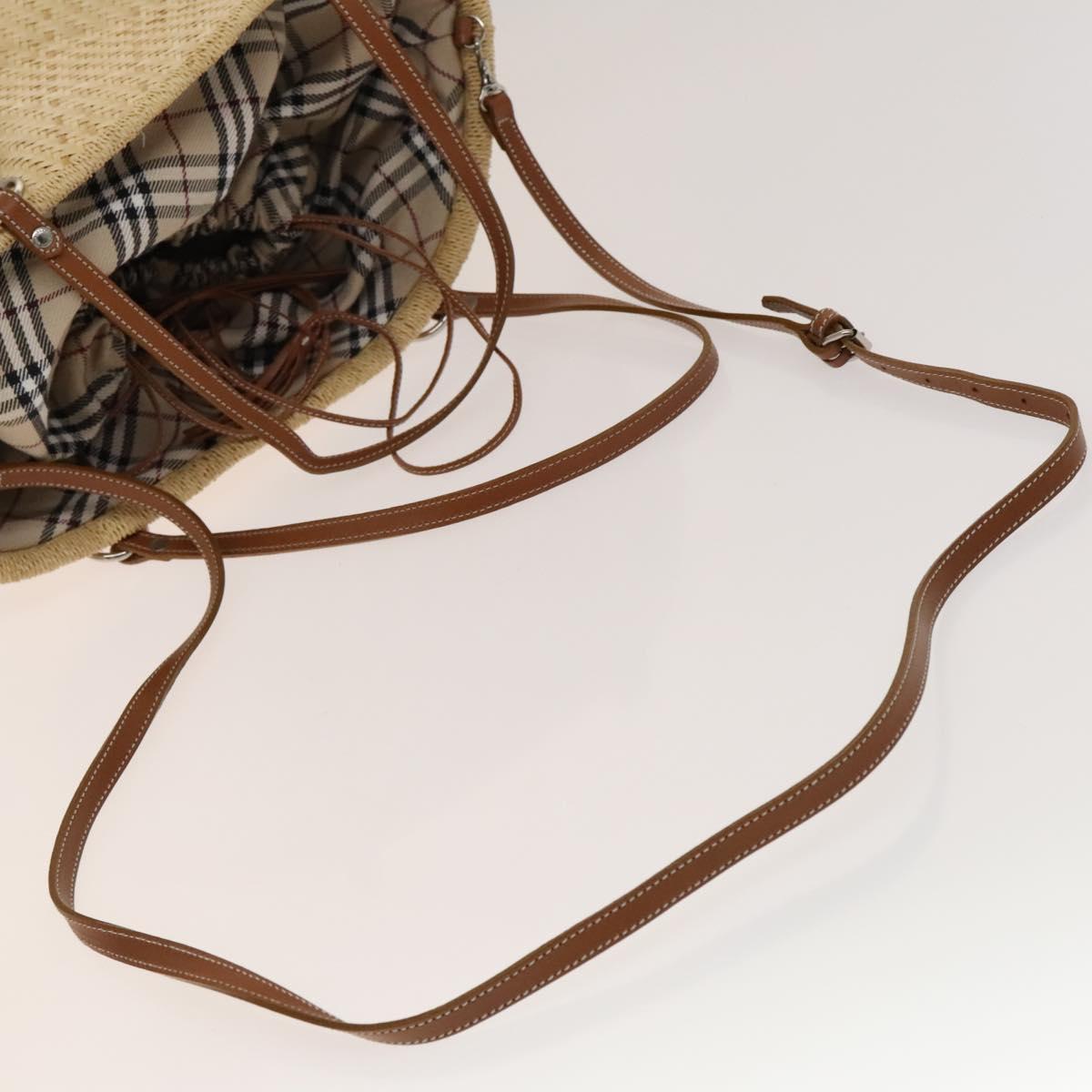 BURBERRY Blue Label Tote Bag Straw 2way Beige Silver Auth yk19134