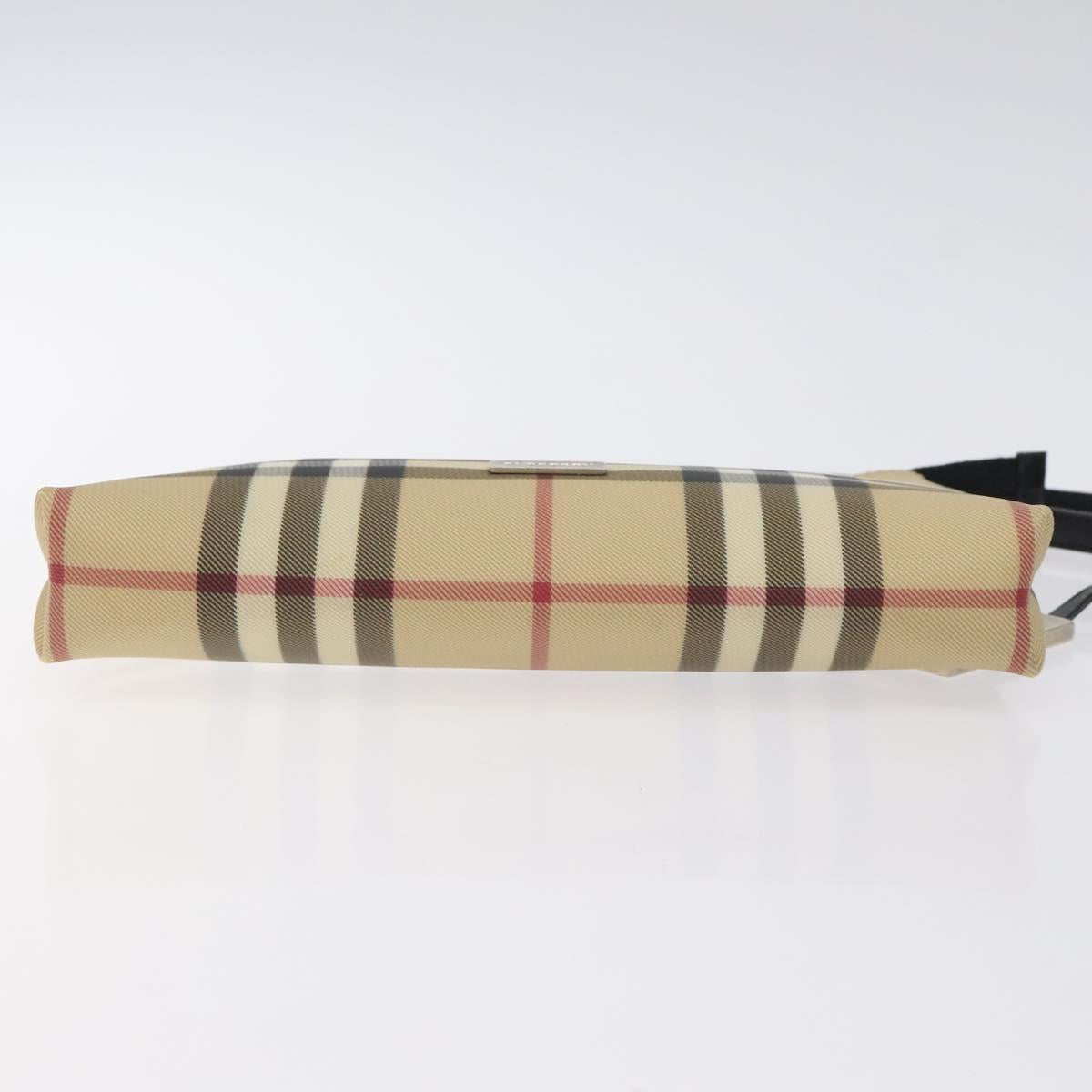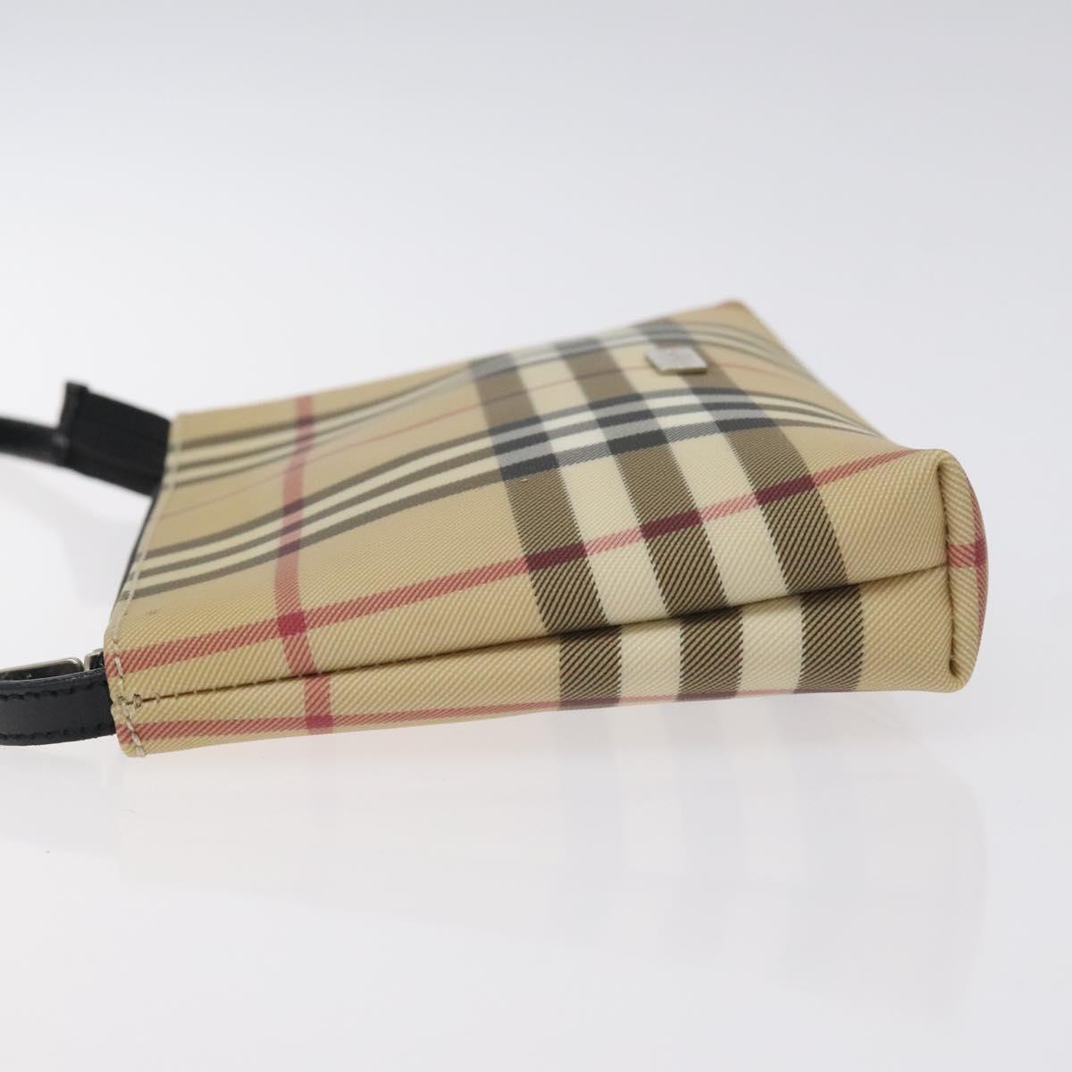 BURBERRY Nova Check Accessory Pouch PVC Beige Silver Auth 129325