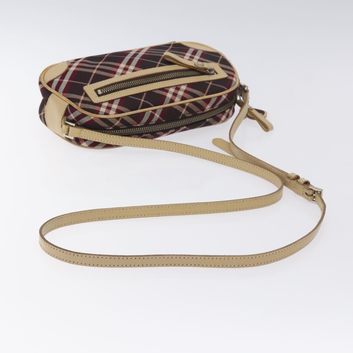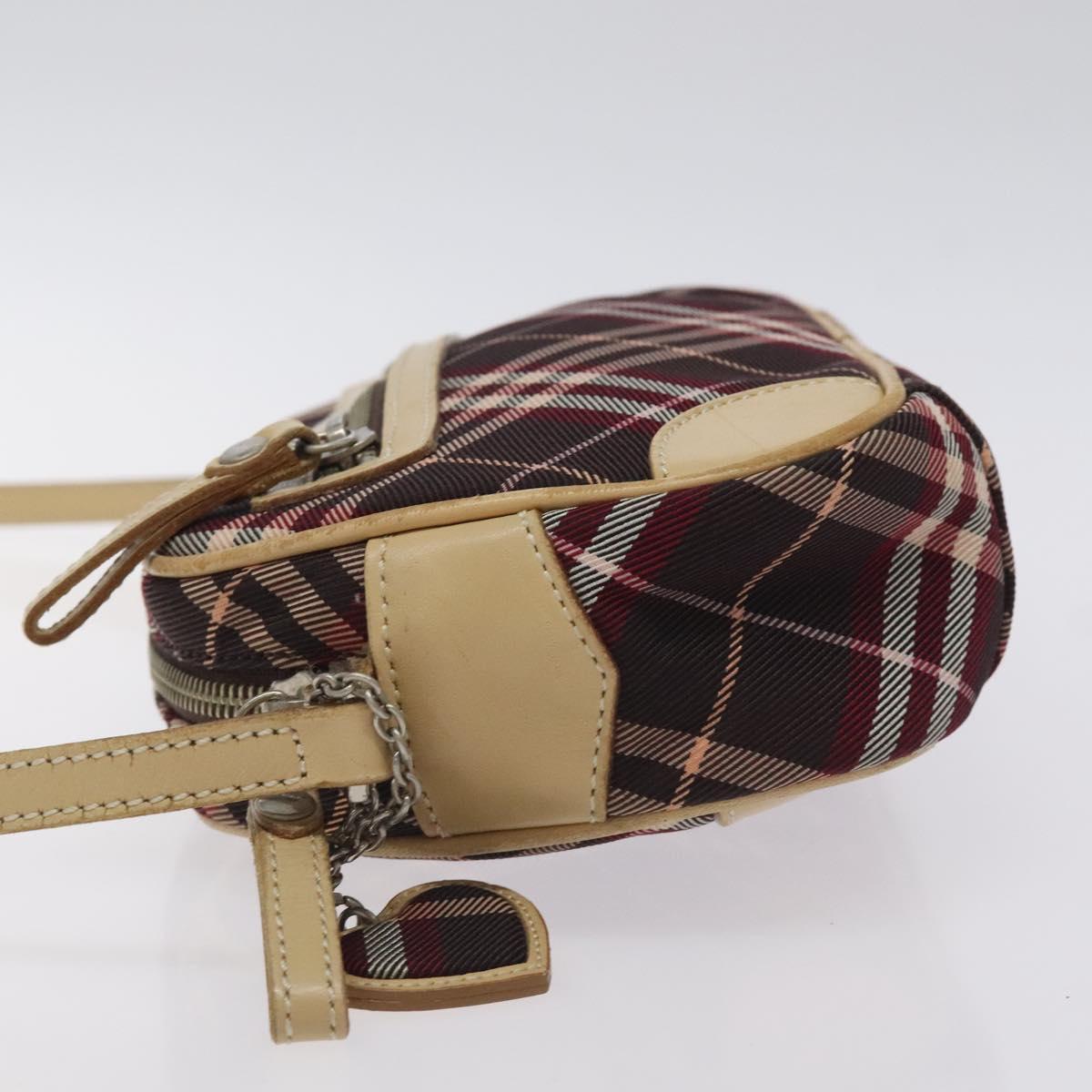 BURBERRY Nova Check Blue Label Shoulder Bag Nylon Red Silver Auth ti3261