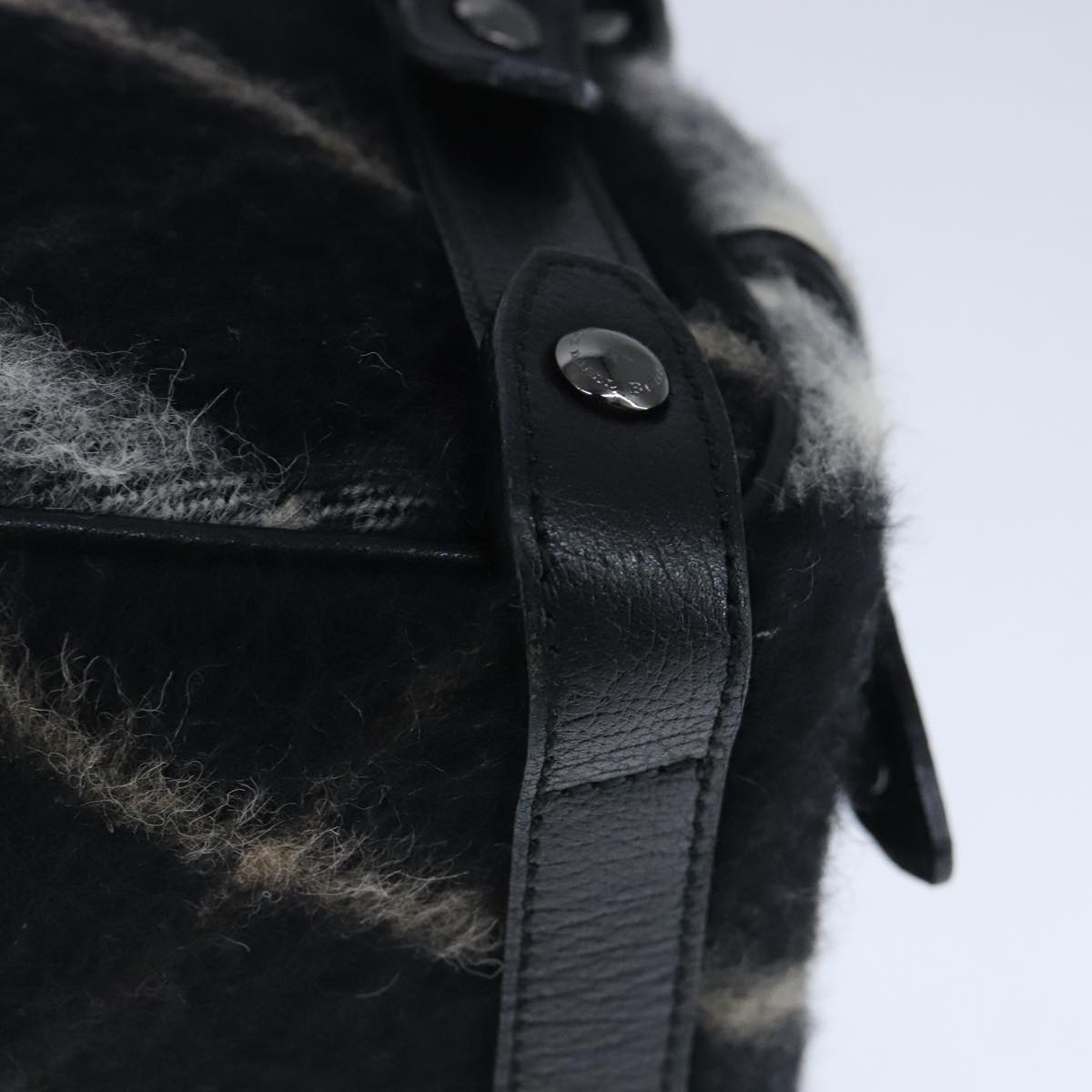 BURBERRY Nova Check Blue Label Shoulder Bag Wool Leather Black Auth 102387