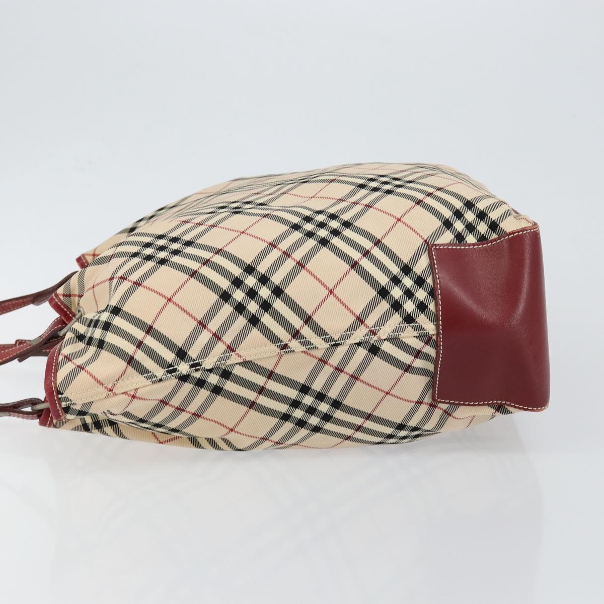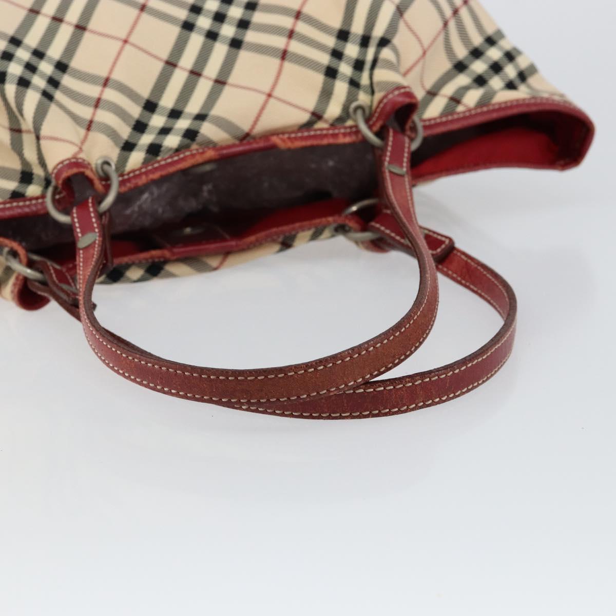 BURBERRY Nova Check Blue Label Tote Bag Nylon Beige Silver Auth 146443