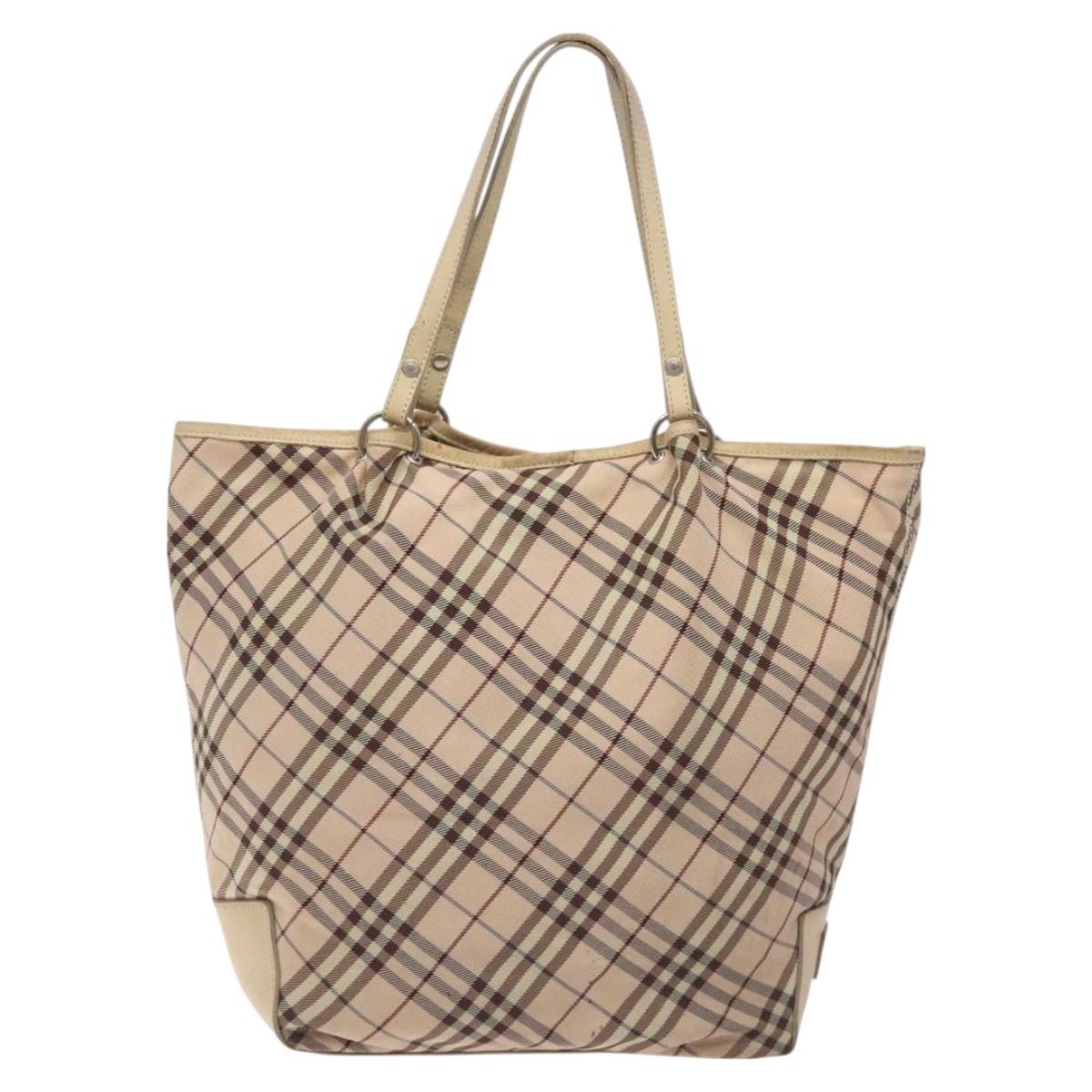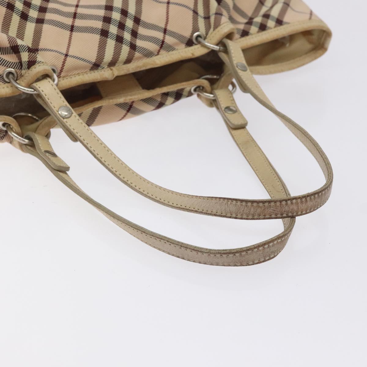 BURBERRY Nova Check Blue Label Tote Bag Nylon Beige Silver Auth ti3252
