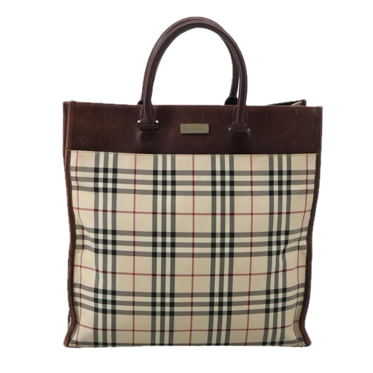 BURBERRY Nova Check Hand Bag Canvas Beige Auth 103534