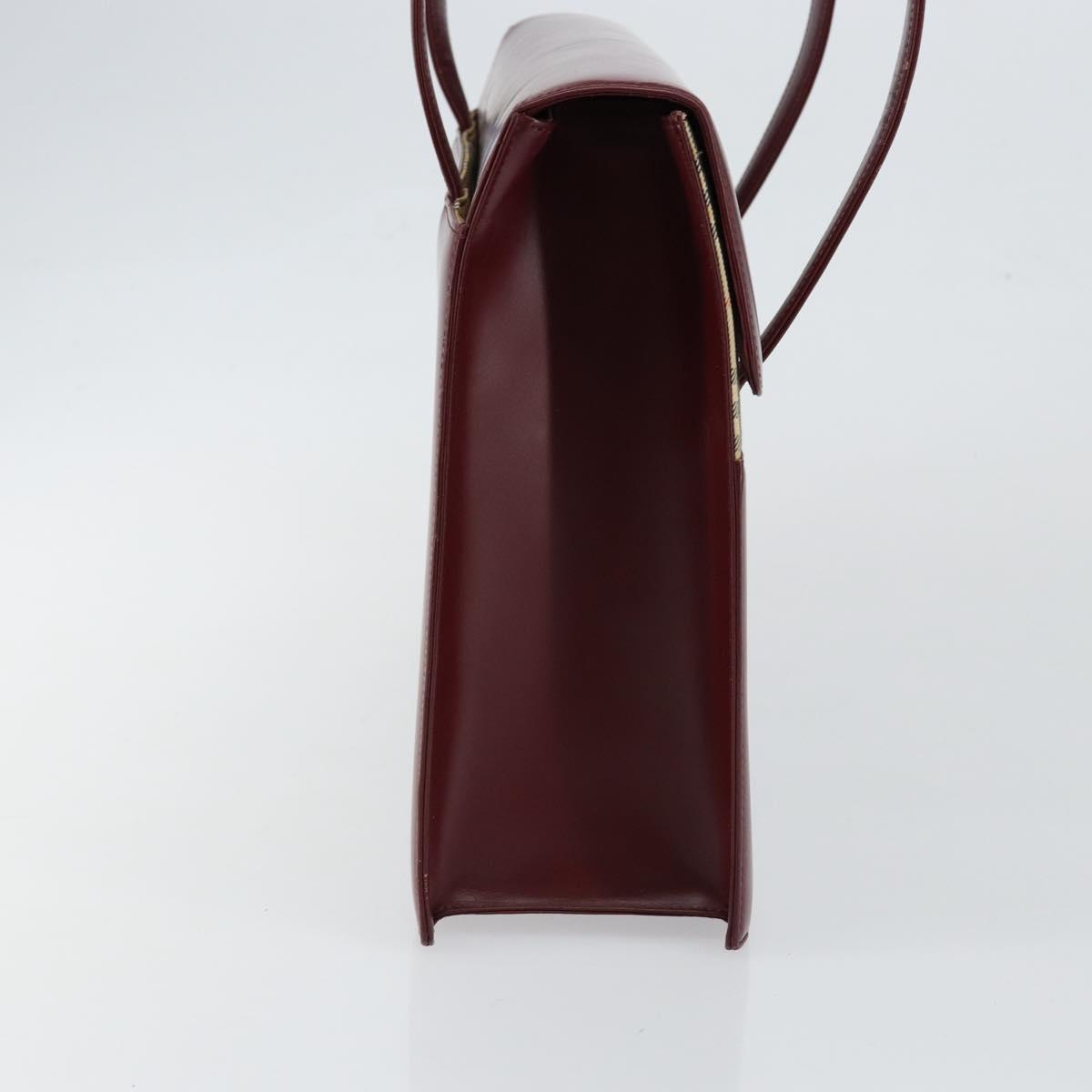 BURBERRY Nova Check Hand Bag Canvas Leather Bordeaux Beige Auth ki6009
