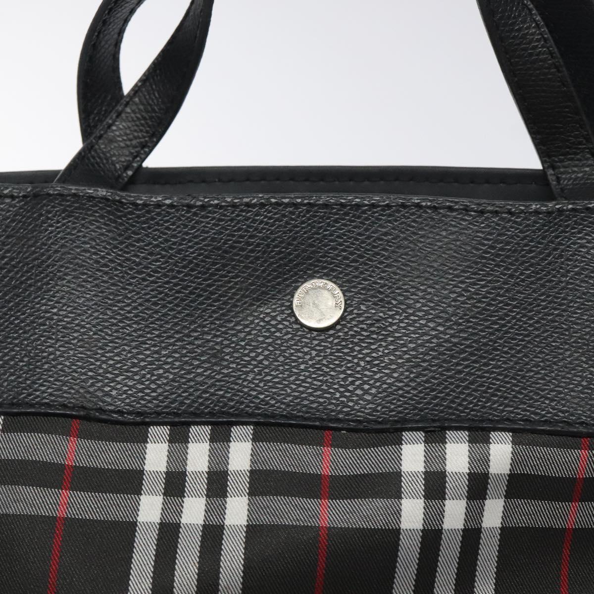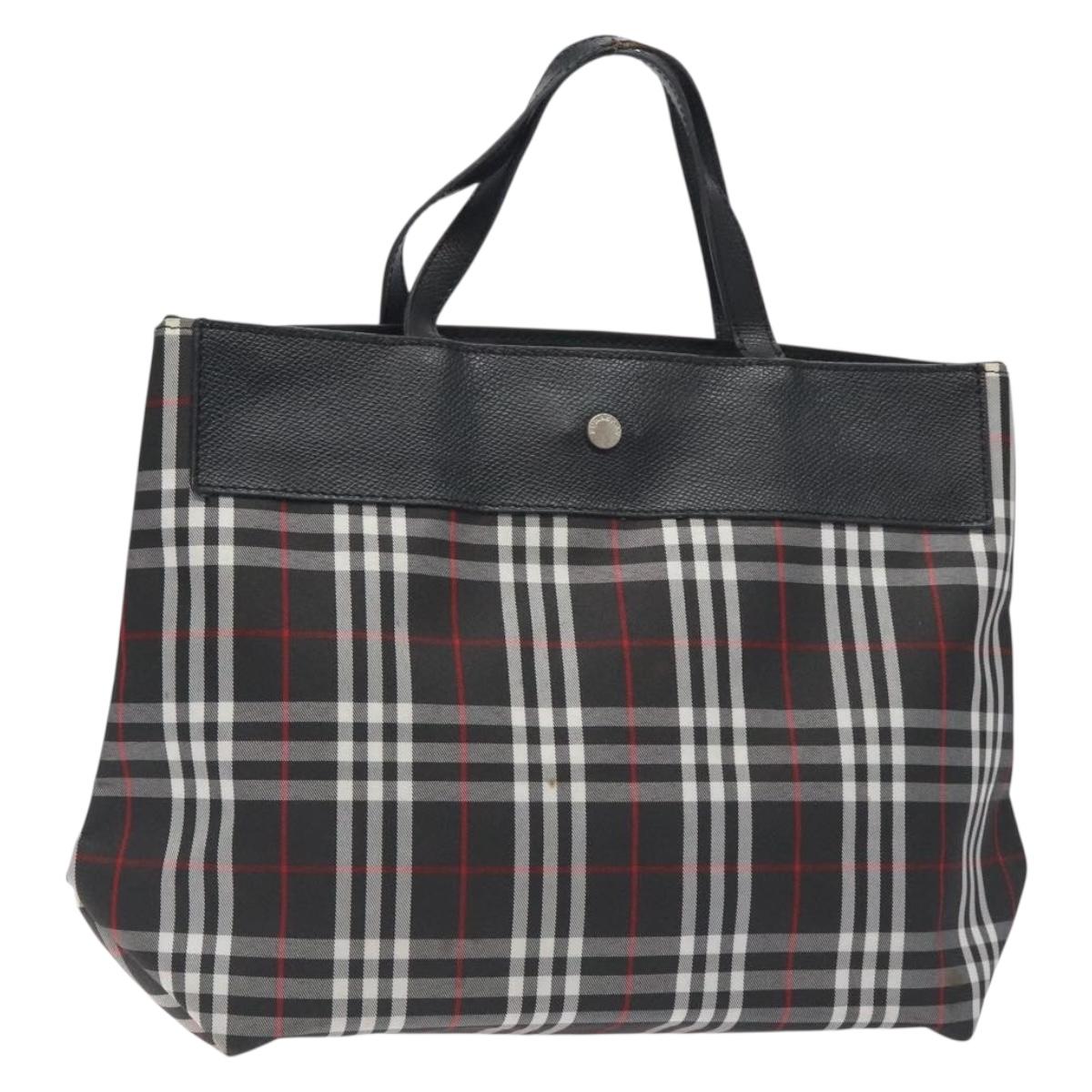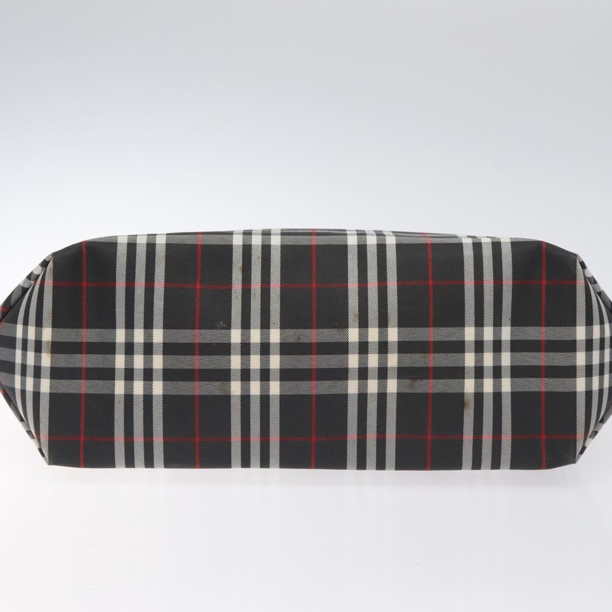 BURBERRY Nova Check Hand Bag Nylon Black Silver Auth 130995