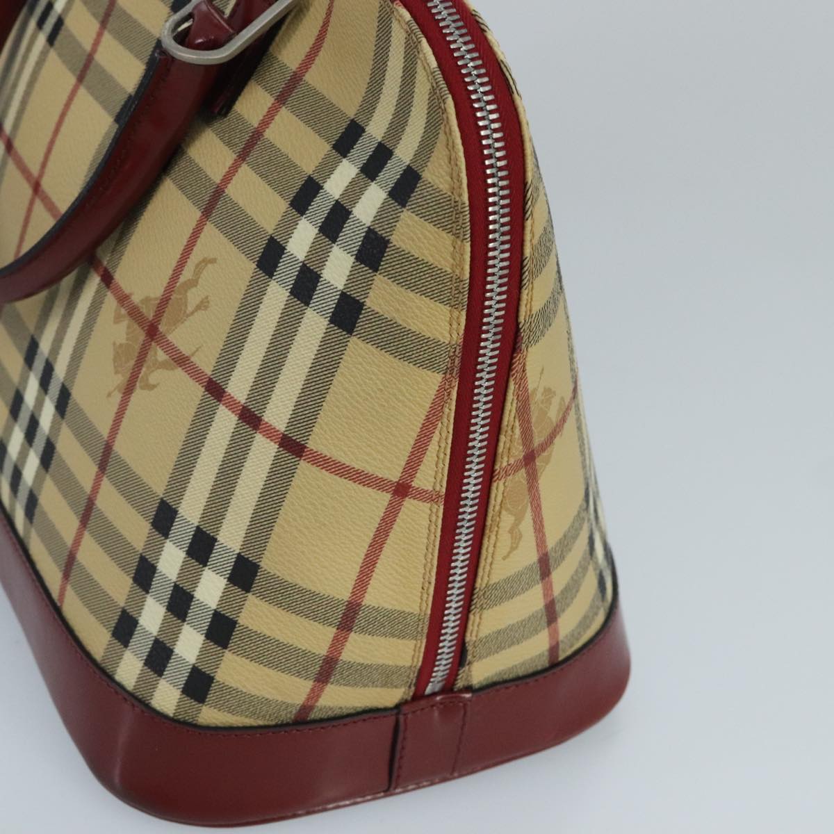 BURBERRY Nova Check Hand Bag PVC 2way Silver Beige Auth 100157