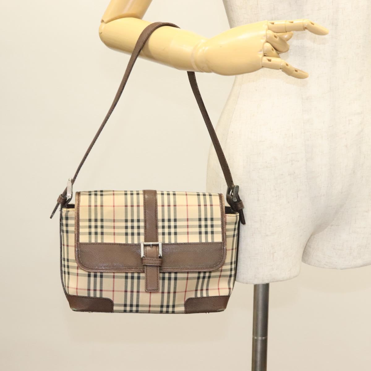 BURBERRY Nova Check Shoulder Bag Canvas Beige Auth 130914