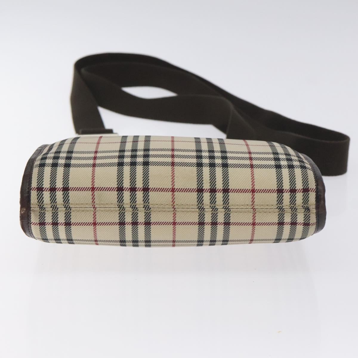 BURBERRY Nova Check Shoulder Bag Canvas Beige Silver Auth bs27133