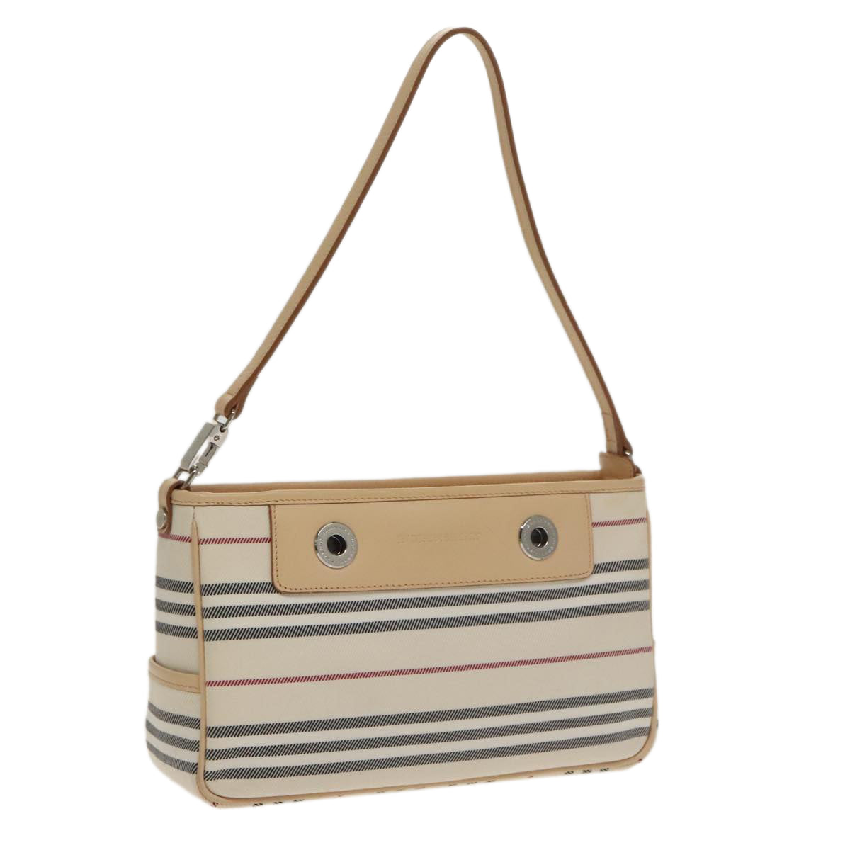 BURBERRY Nova Check Shoulder Bag Canvas Leather Beige White Auth 100698