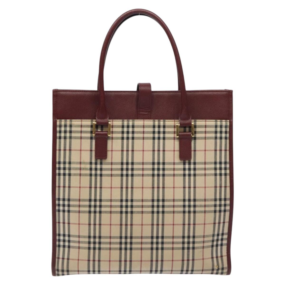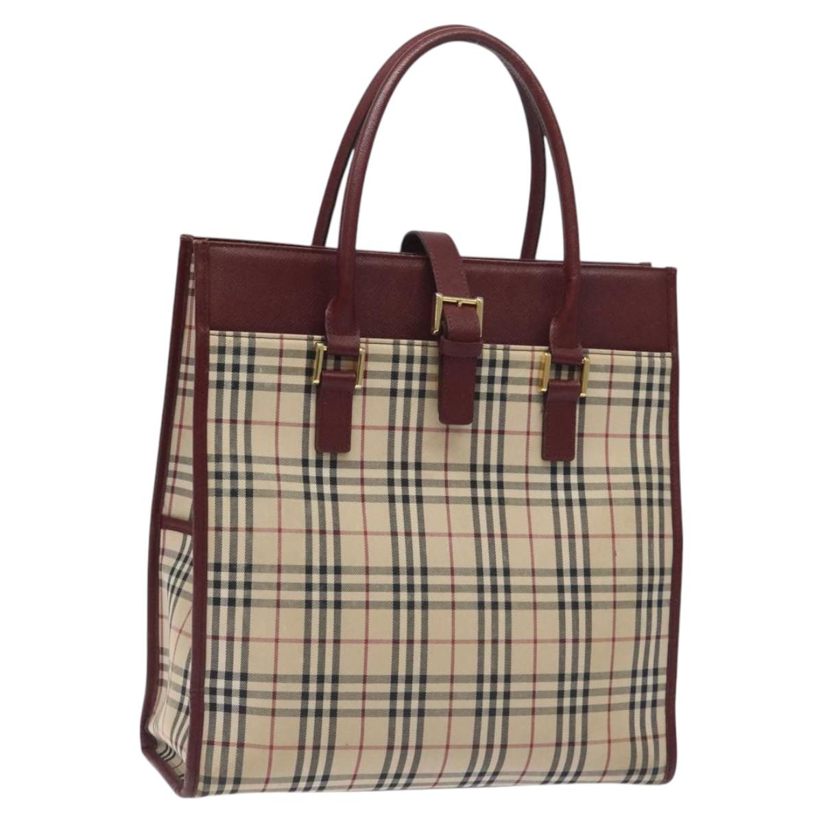 BURBERRY Nova Check Tote Bag Canvas Beige Gold Auth 129950