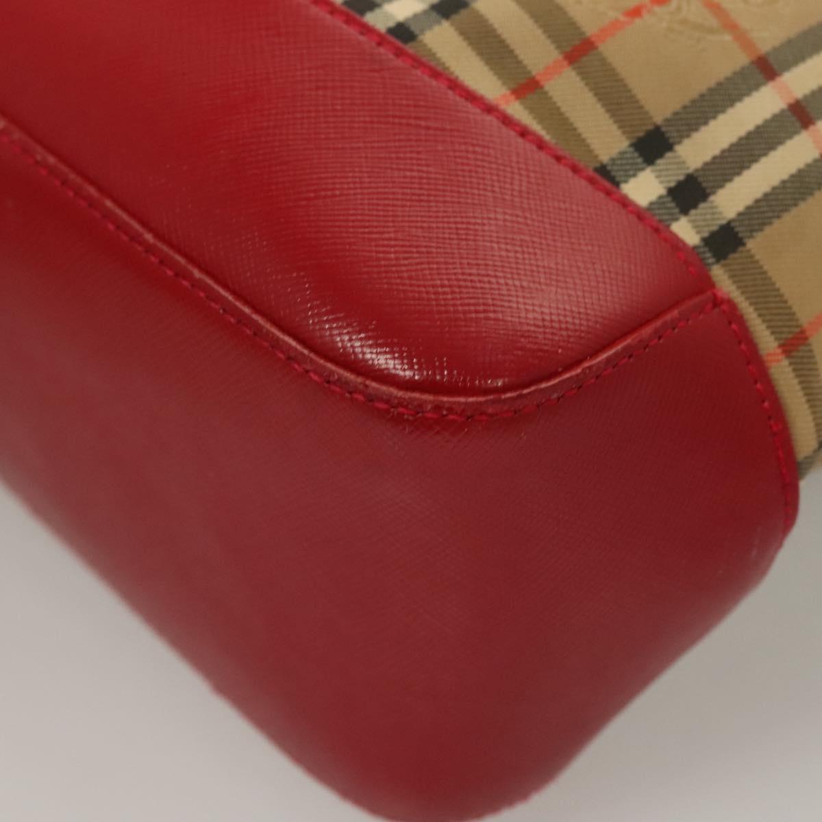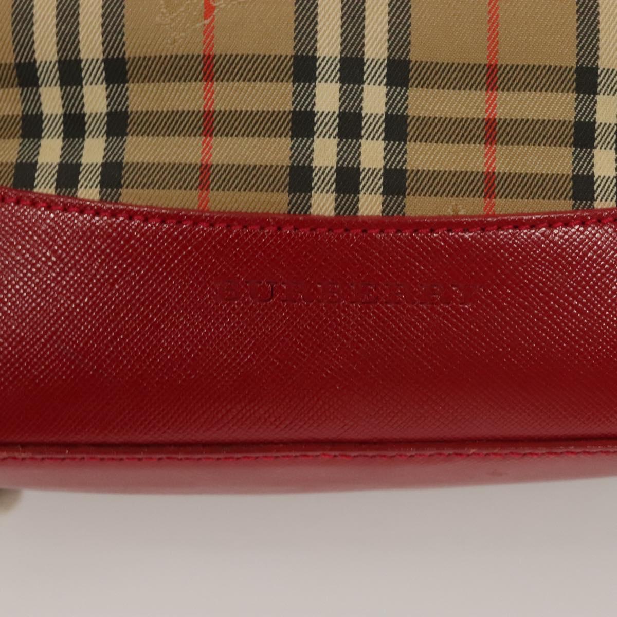 BURBERRY Nova Check Tote Bag Canvas Leather Beige Red gold Auth 130949
