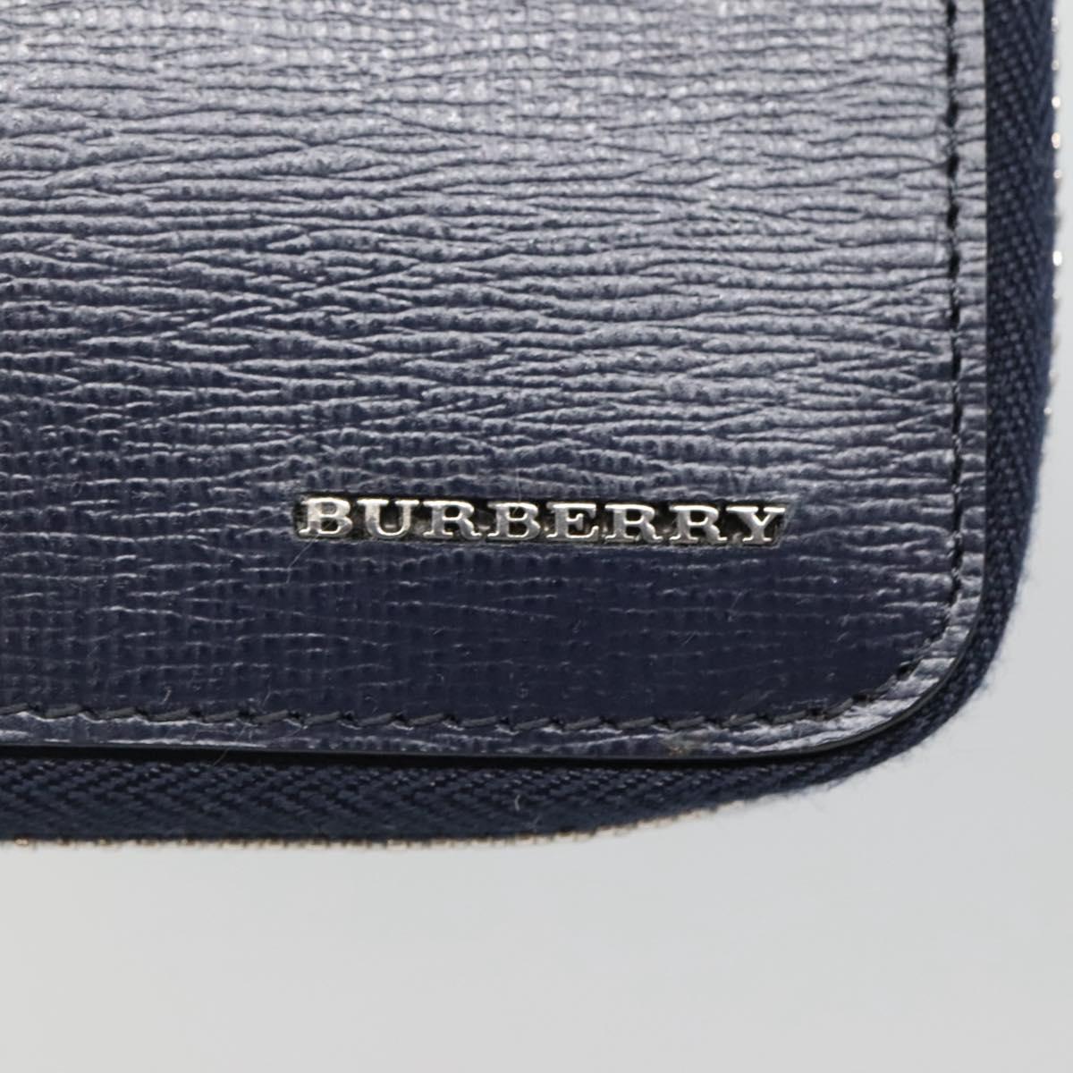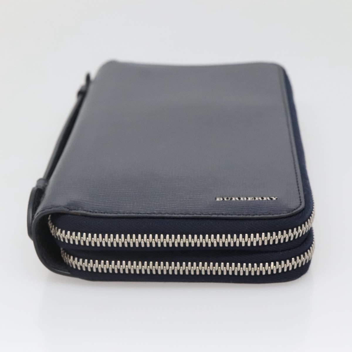 BURBERRY Travel Case Leather Navy Silver Auth 140004