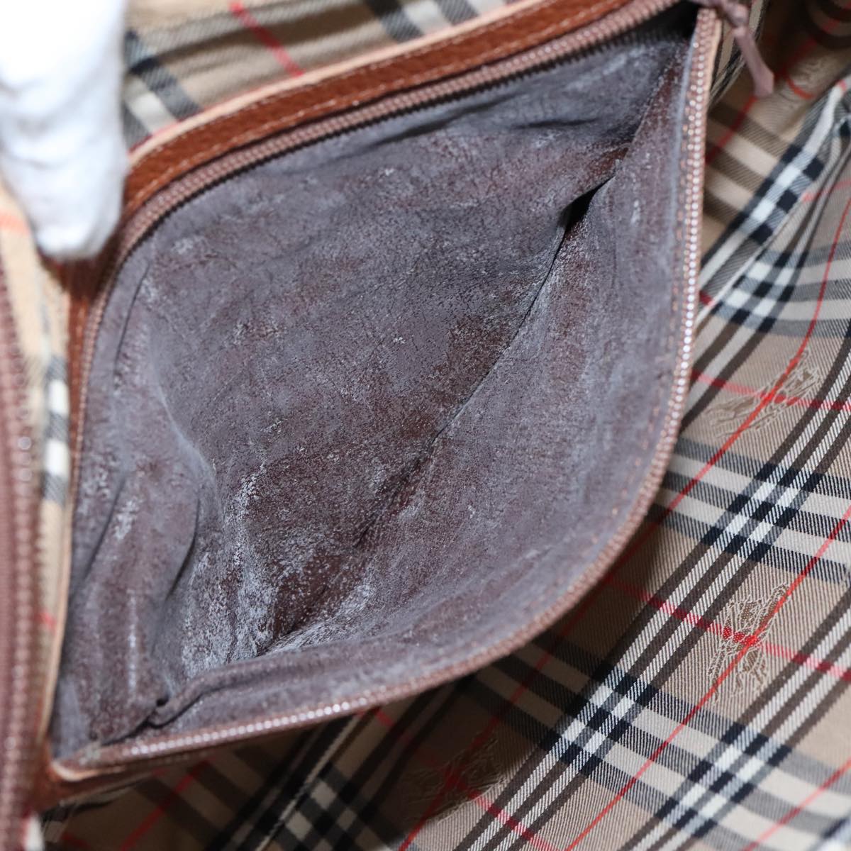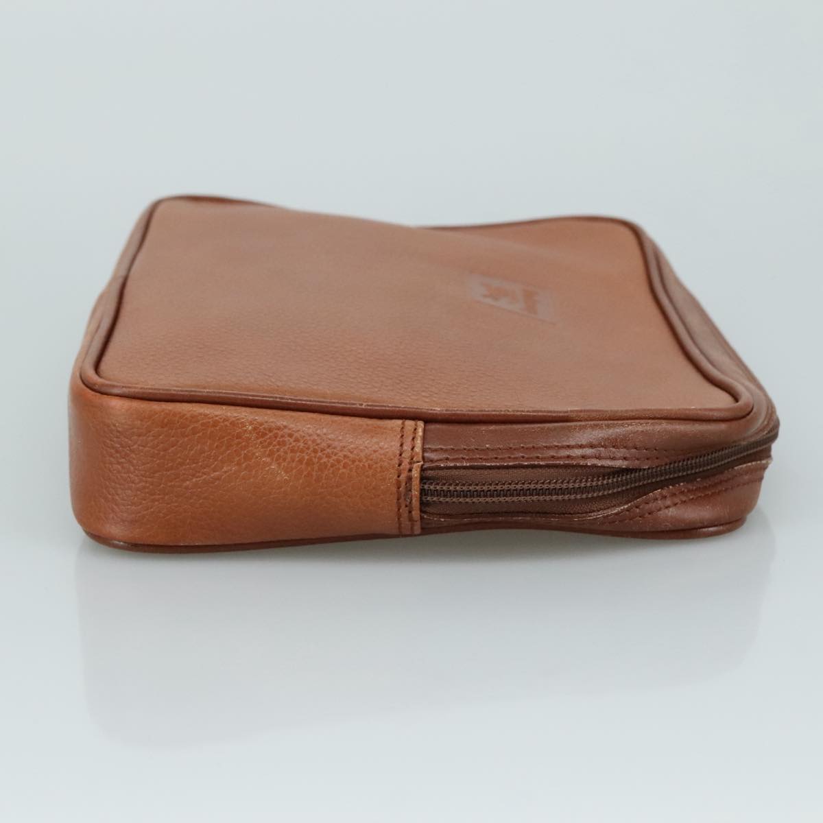 Burberrys Clutch Bag Leather Brown Gold Auth ti2491
