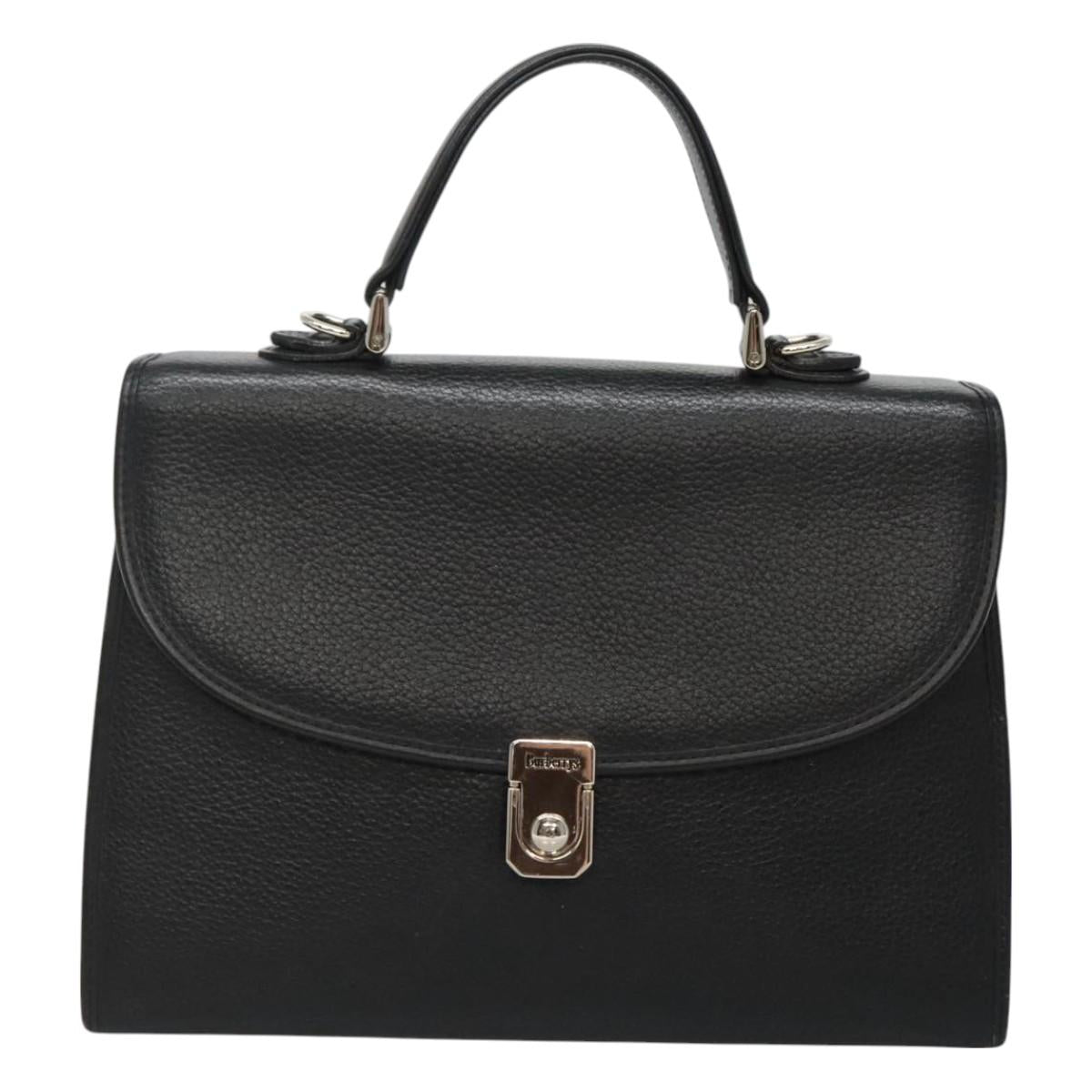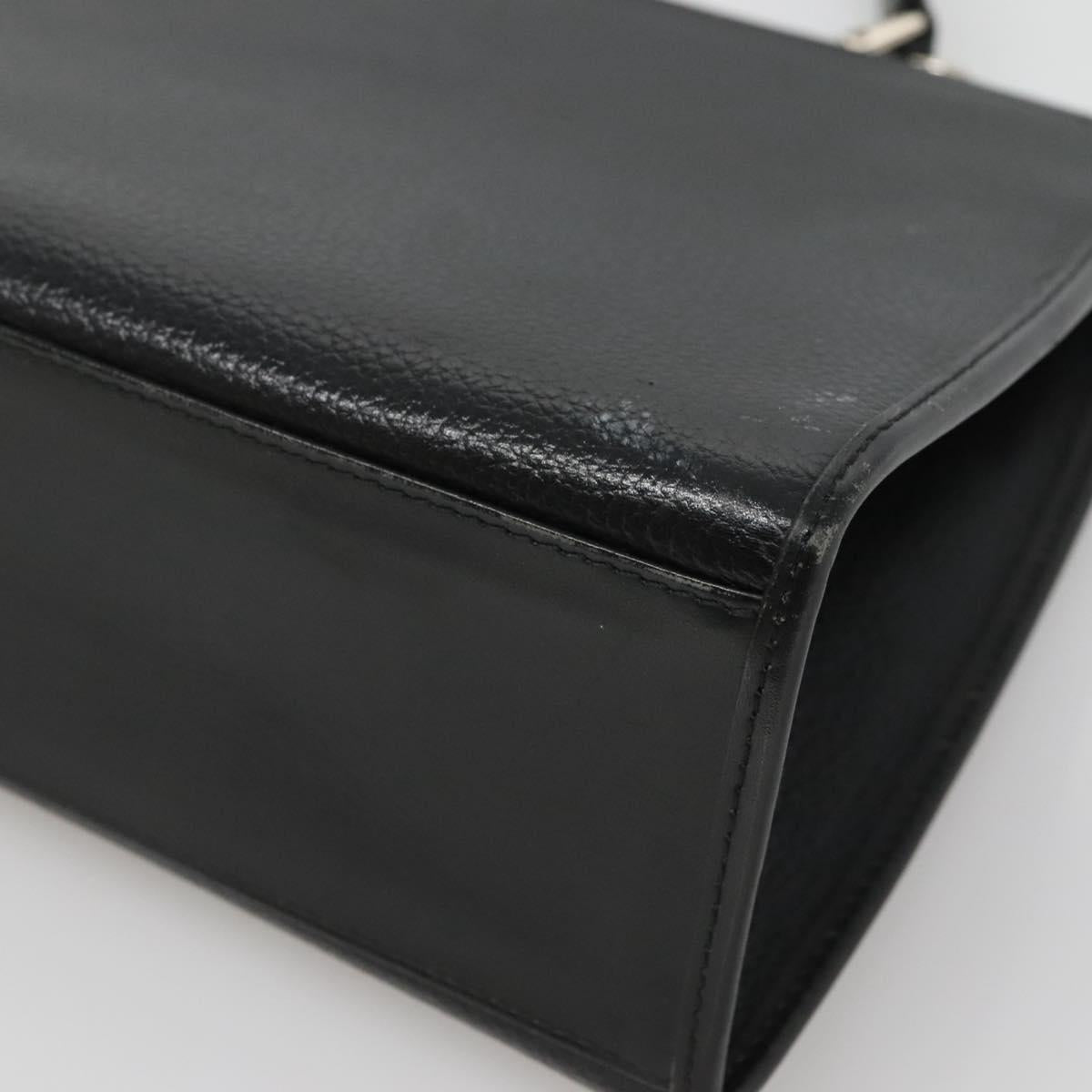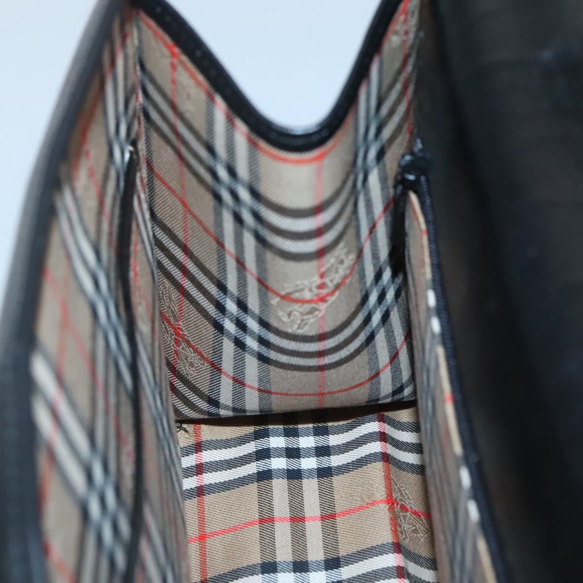 Burberrys Hand Bag Leather Black Silver Auth BA3309