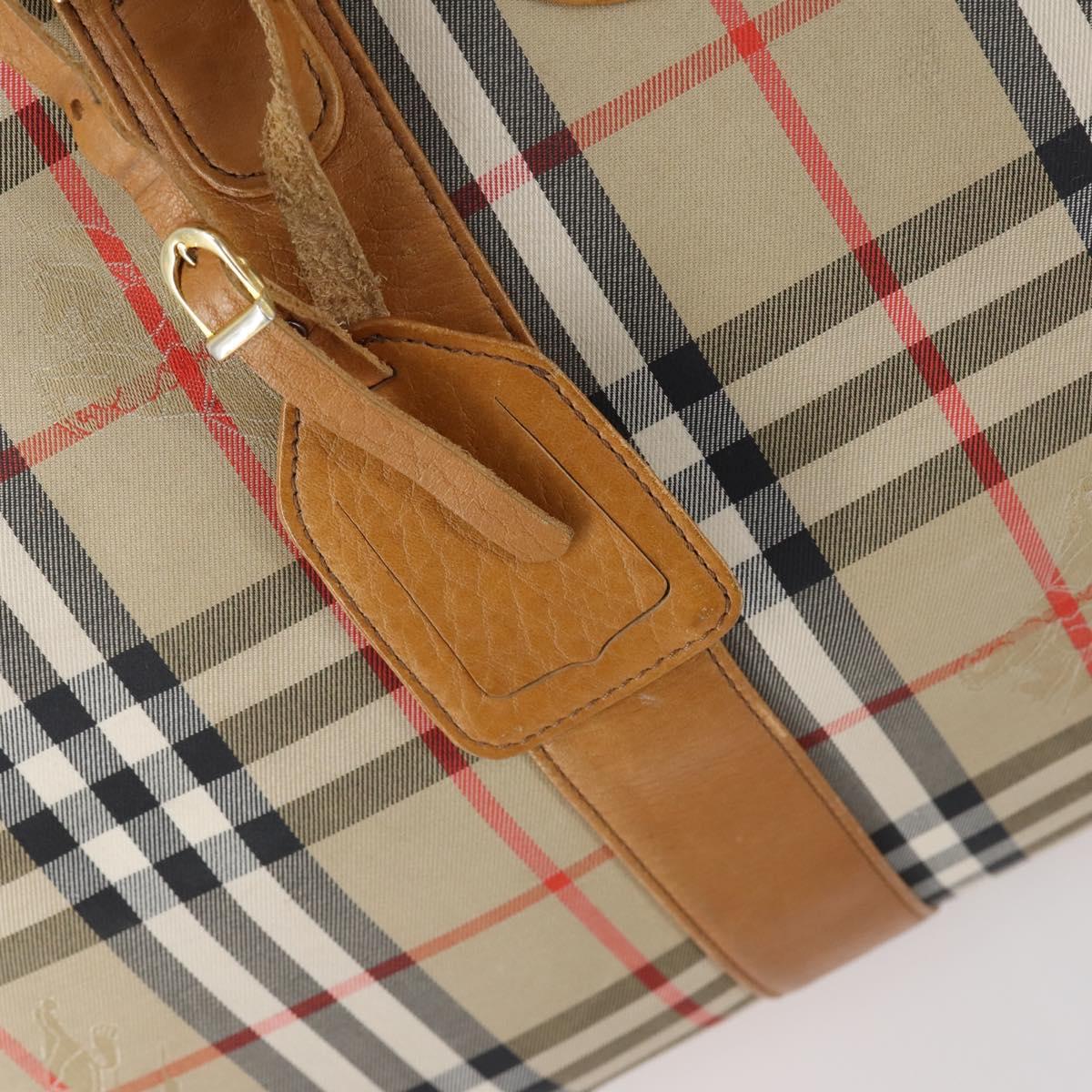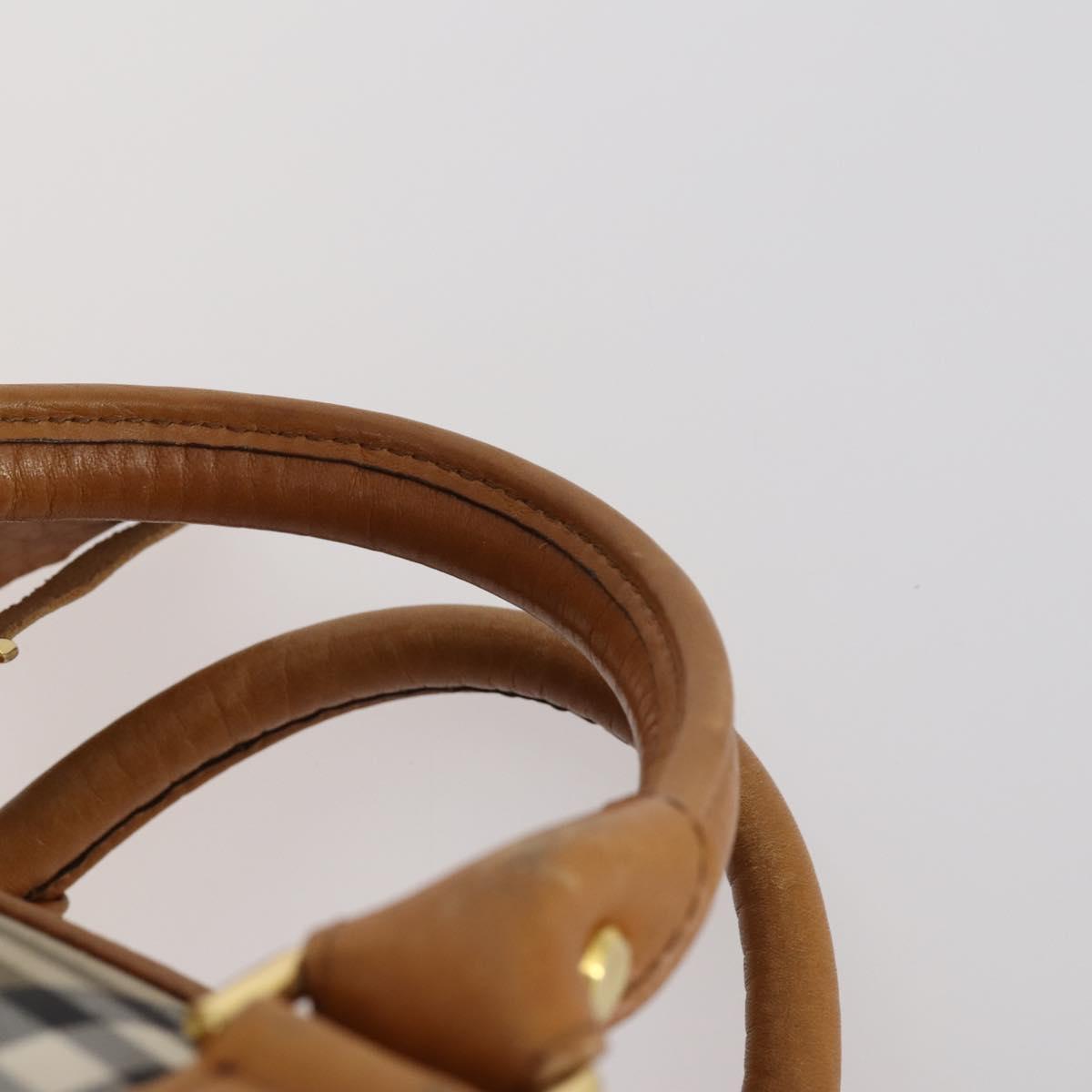 Burberrys Nova Check Boston Bag Canvas Beige Gold Auth 144621