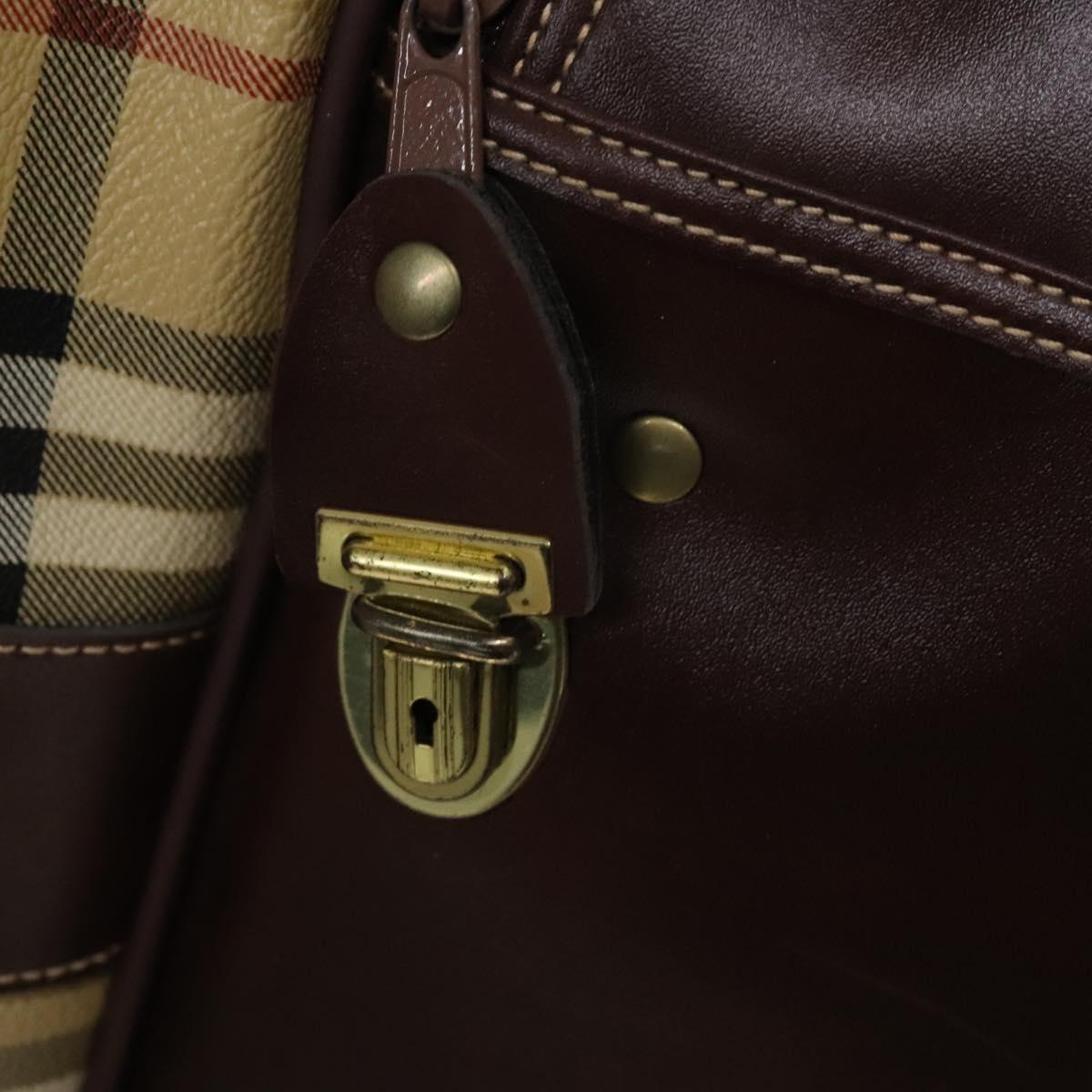 Burberrys Nova Check Boston Bag PVC Beige Gold Auth 137994