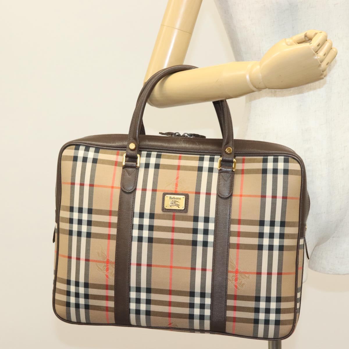 Burberrys Nova Check Business Bag Canvas Beige Gold Auth ep10346