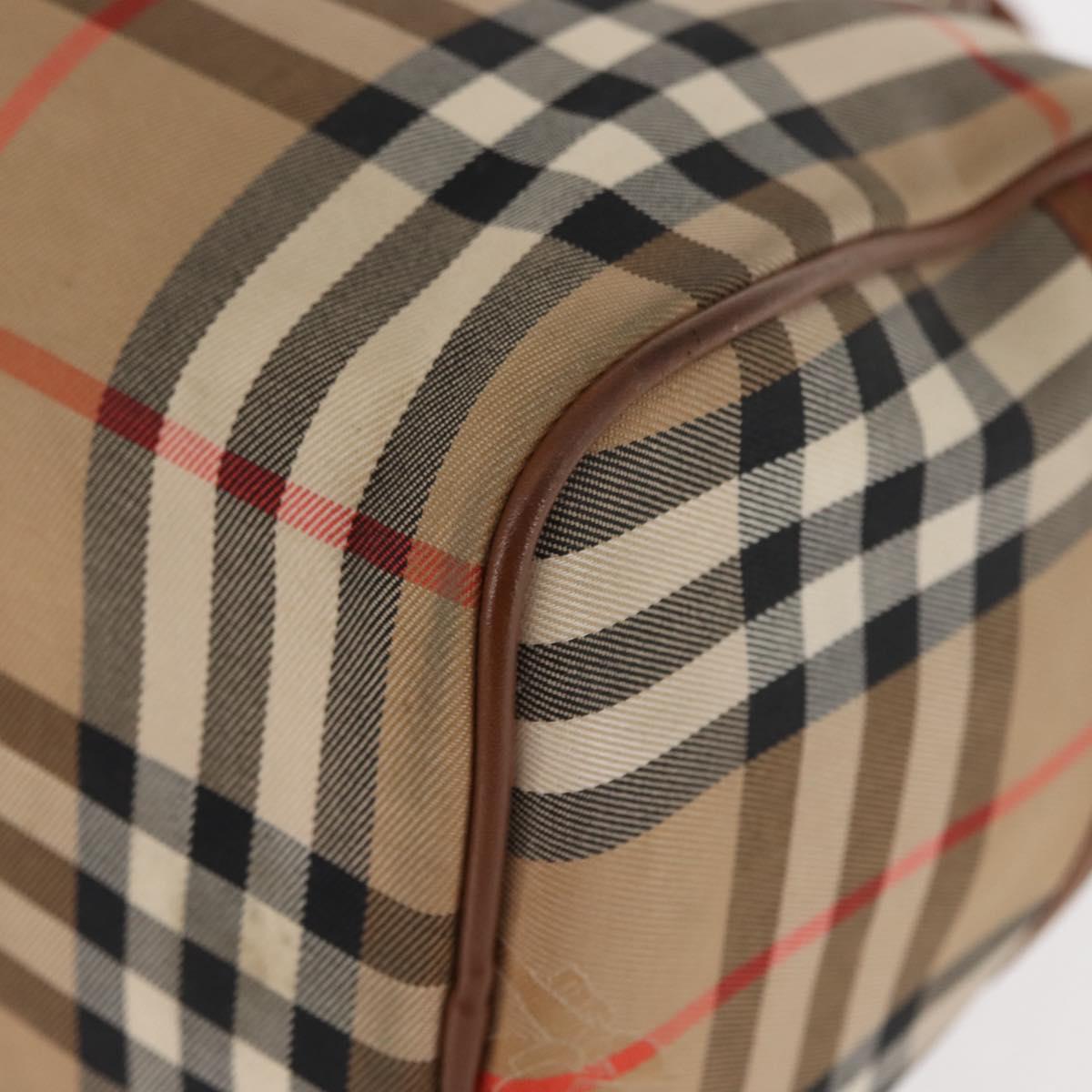 Burberrys Nova Check Hand Bag Canvas Beige Gold Auth 146440