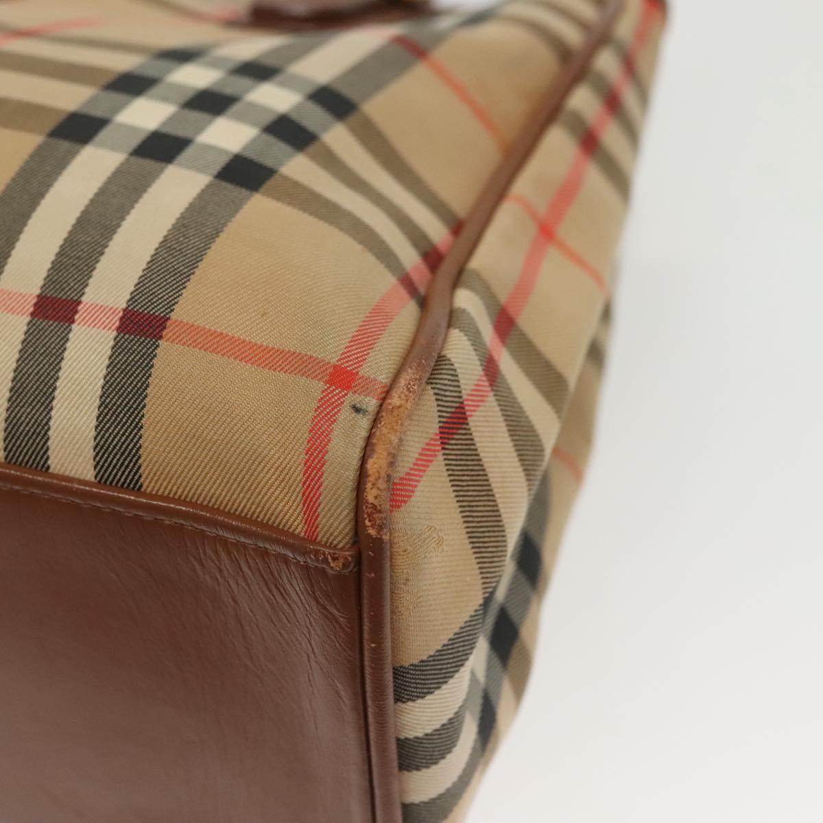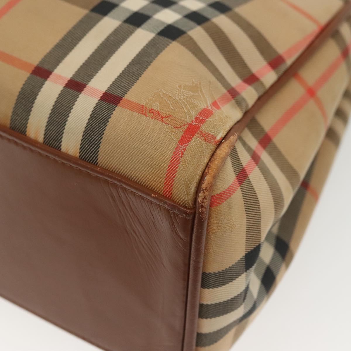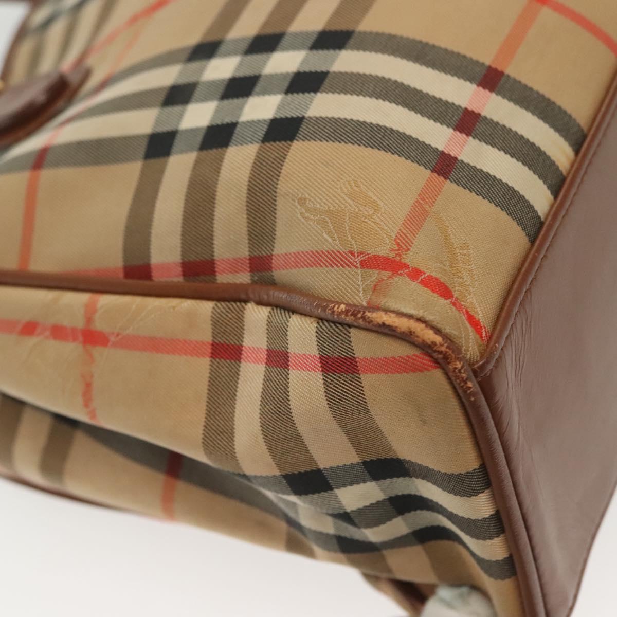 Burberrys Nova Check Hand Bag Canvas Gold Beige Auth ep10436