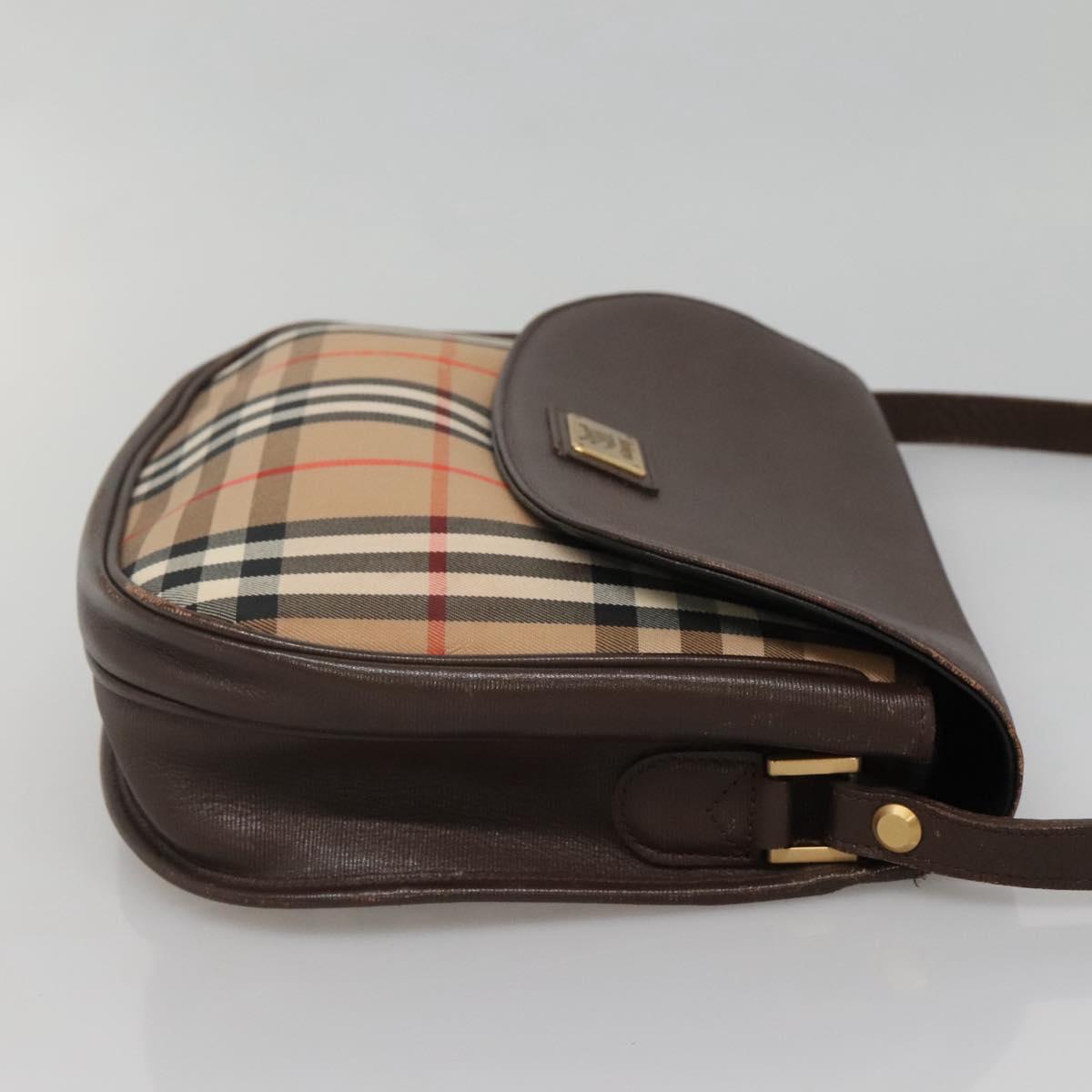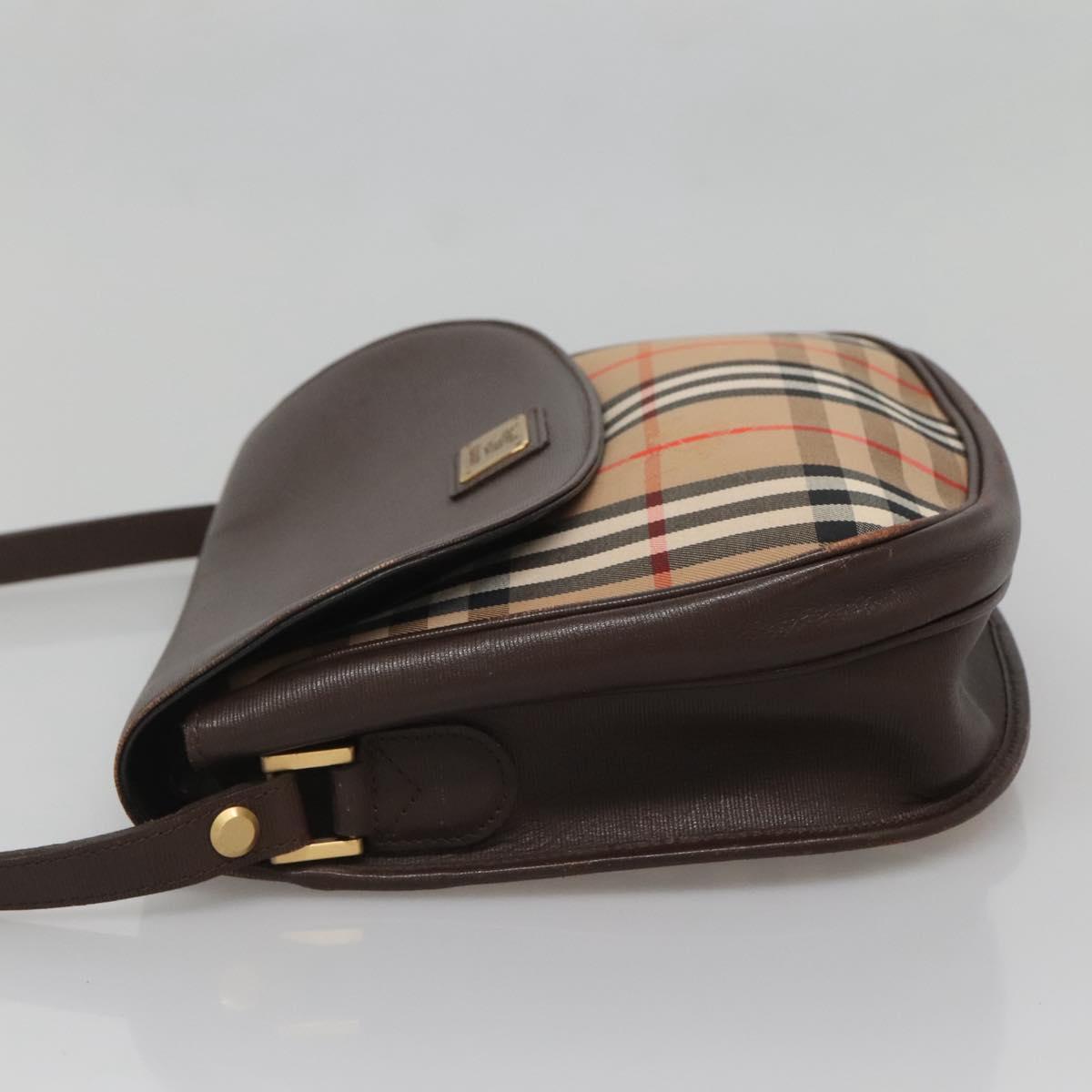 Burberrys Nova Check Shoulder Bag Canvas Beige Gold Auth BA5409