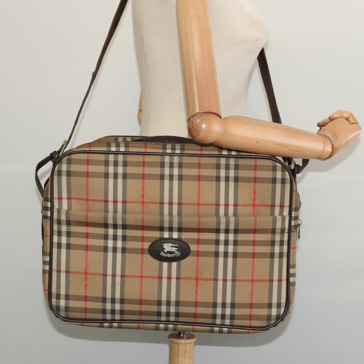 Burberrys Nova Check Shoulder Bag Canvas Beige Gold Auth ti3263