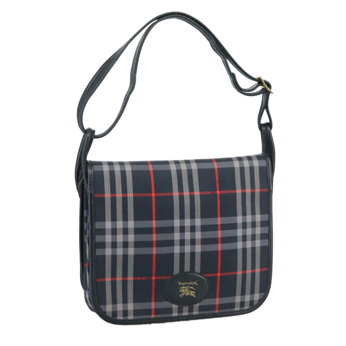 Burberrys Nova Check Shoulder Bag Canvas Navy Auth 101945